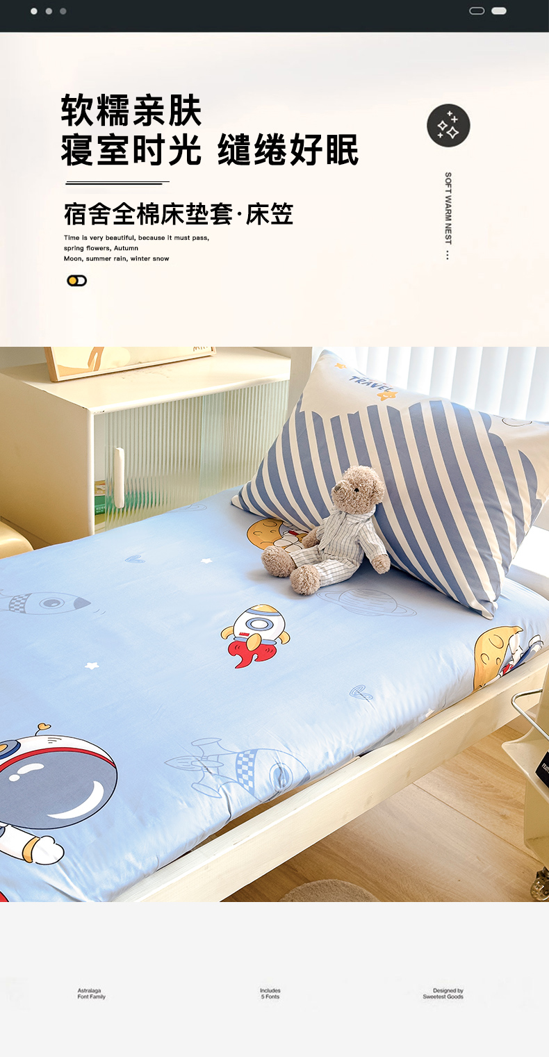 商品名称:(总)金鑫汇 2024新款全棉卡通印花学生床垫套床笠系列