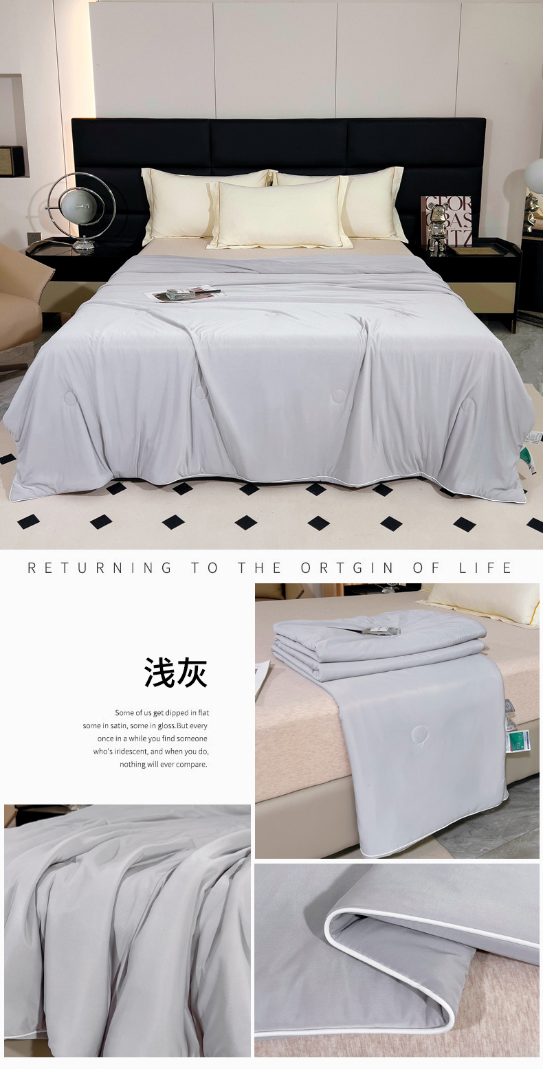情煊家纺 2024新款纯色凉感丝夏被 浅灰