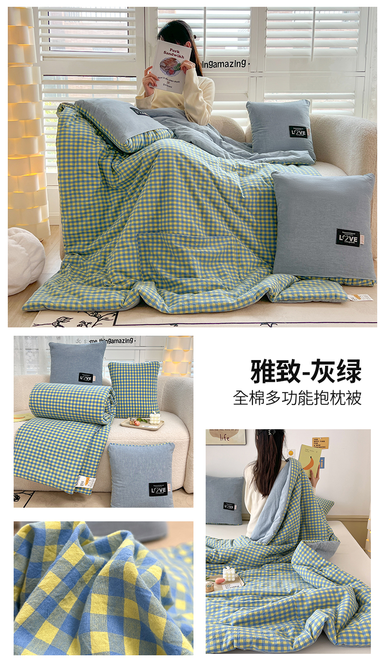 (总)翰轩家居 2025新款A类全棉色织水洗棉懒人休闲被披肩抱枕三合一被子,巴克曼,布兰卡,格瑞塔,格森,红颜格,爵士,洛克,摩根,情书,威廉,维多娜