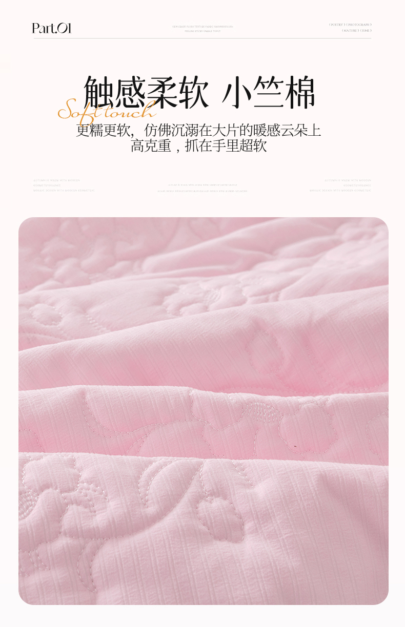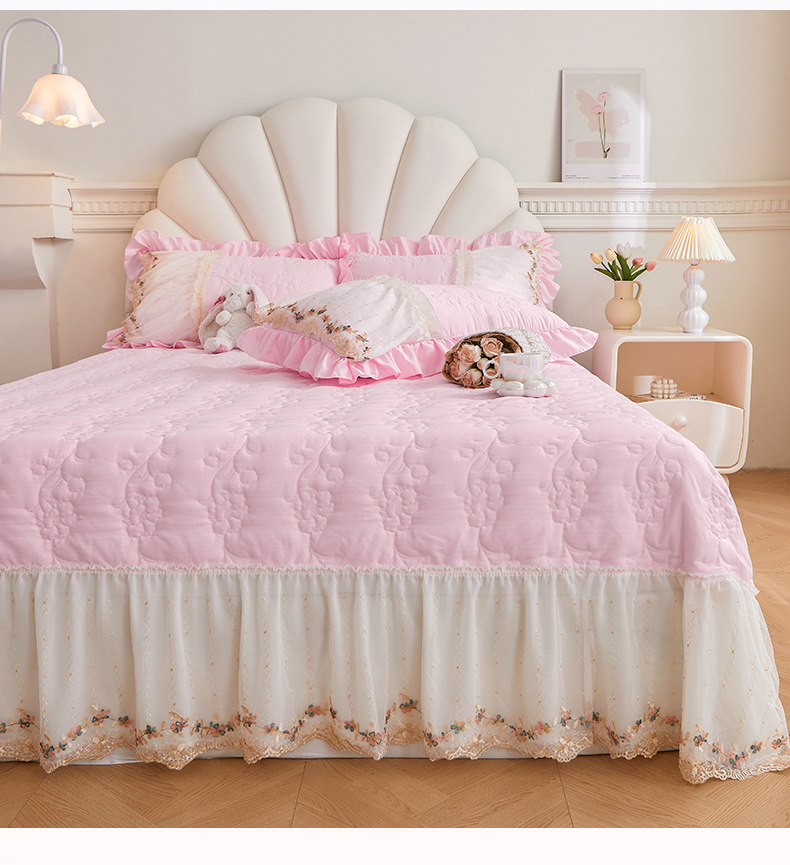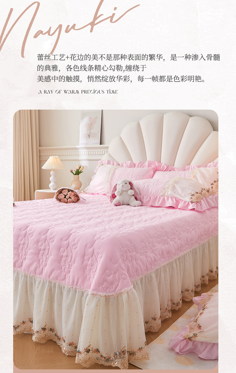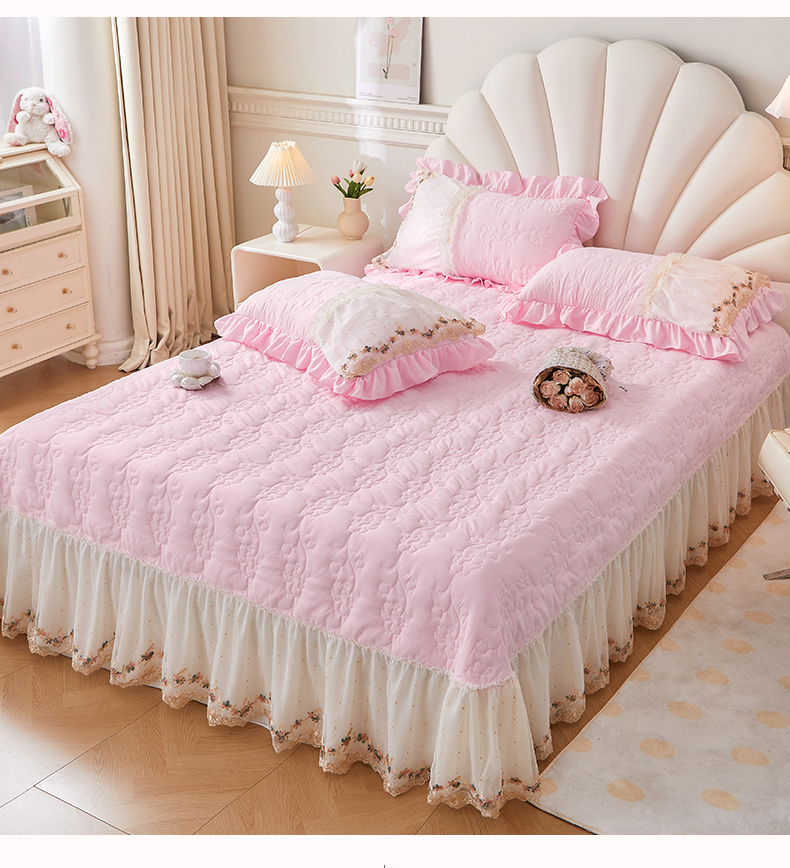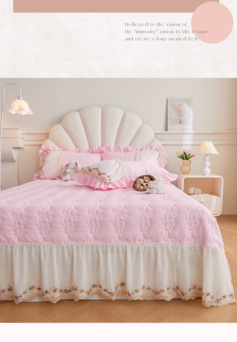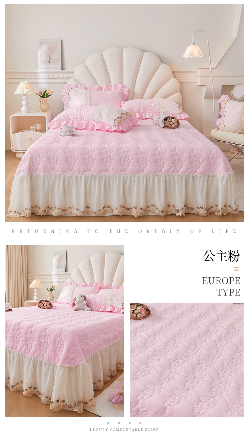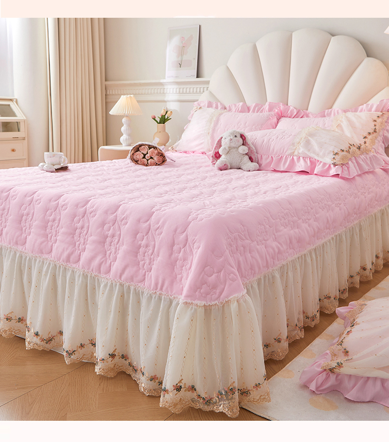 • 91家纺网 家纺一手货源 找家纺 恒爱家纺2024新款唯美舒适小竺棉芊洛公主系列单床盖 公主粉
