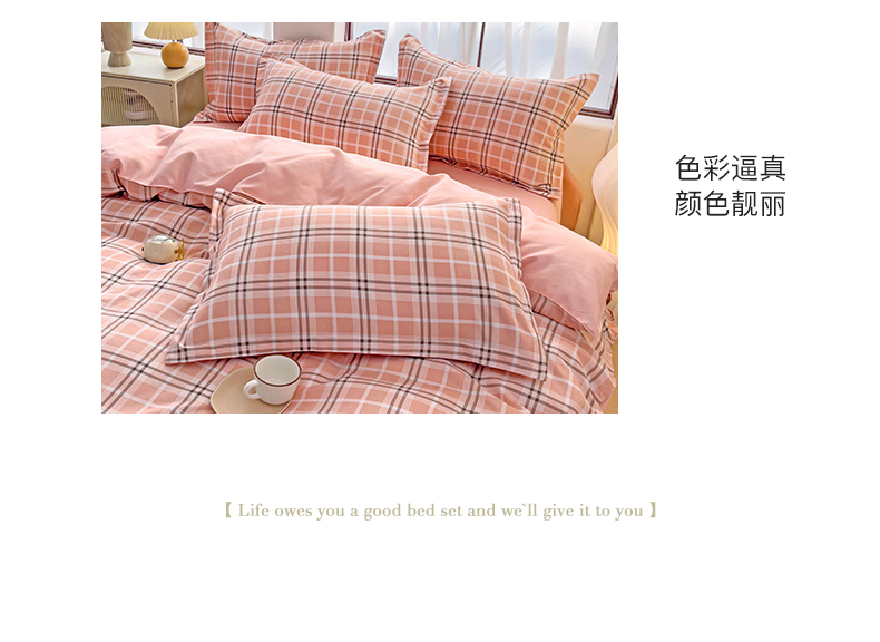 商品名称:好亿来 2025新款无印风植物羊绒加厚斜纹磨毛四件套 暖阳-粉