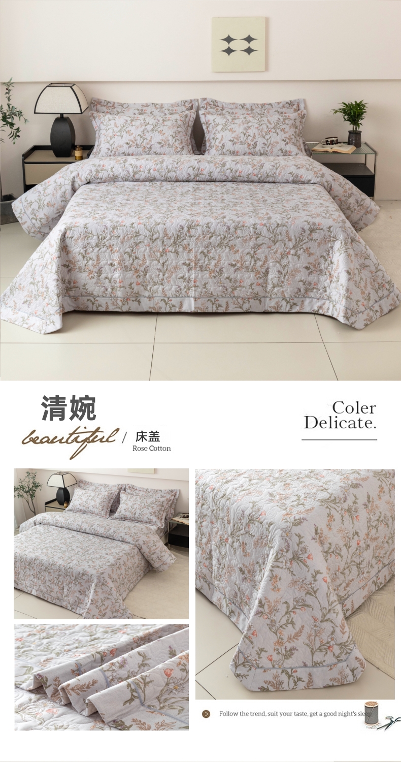 • 91家纺网 家纺一手货源 找家纺 优乐家纺 2025新款全棉斜纹13376宽边枕套床盖三件套 清婉