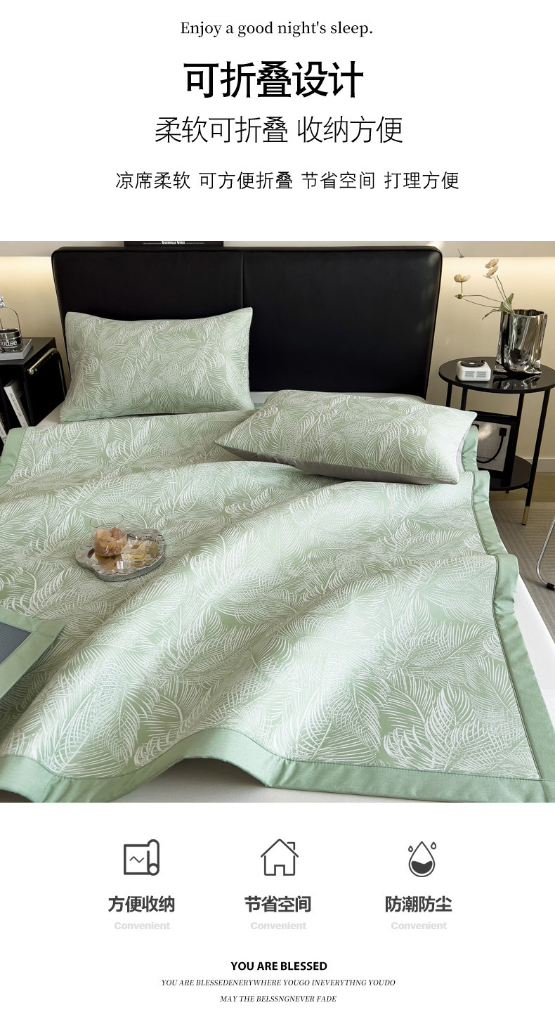 慕尚家纺 2025新款1200D提花凉感席 提花席 羽毛纷飞绿