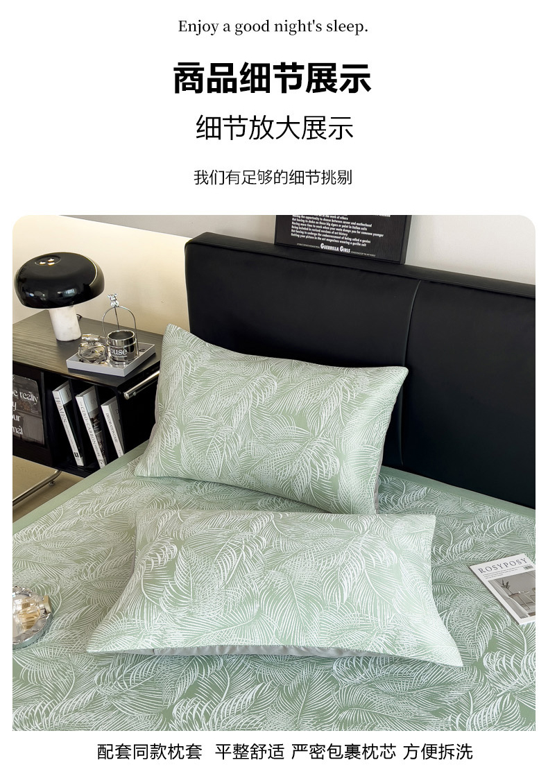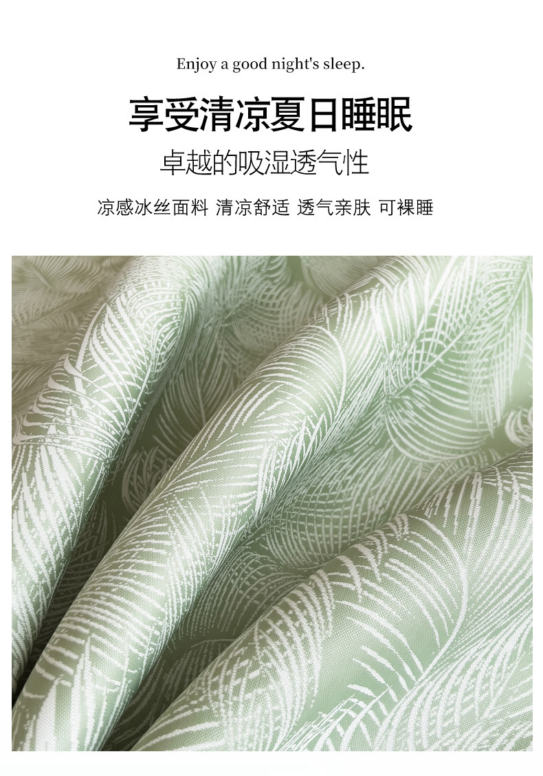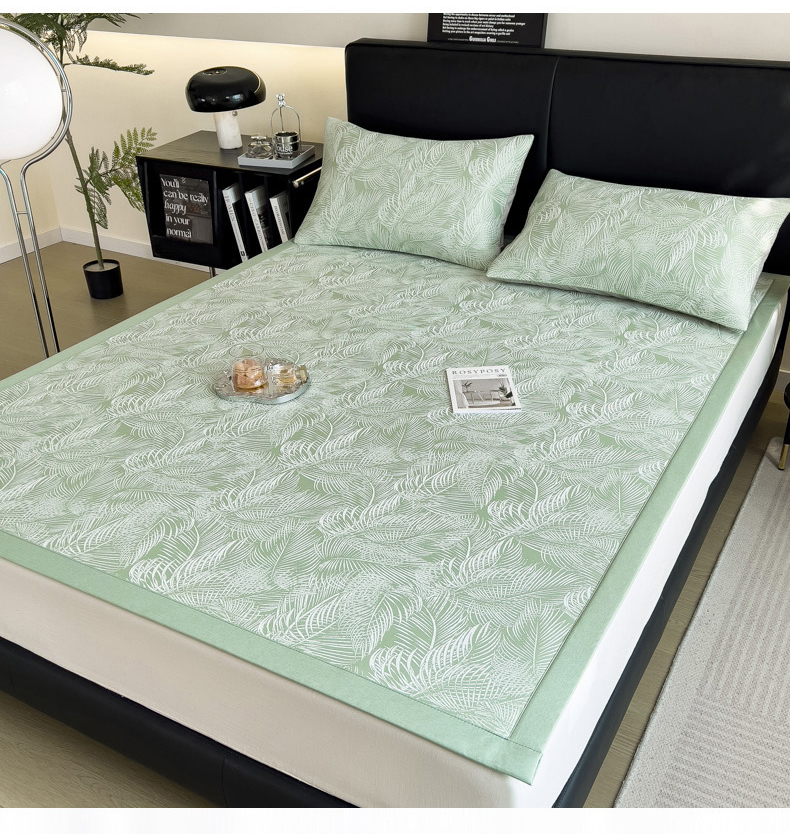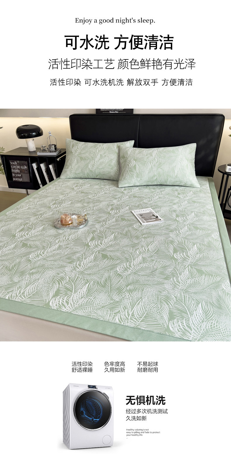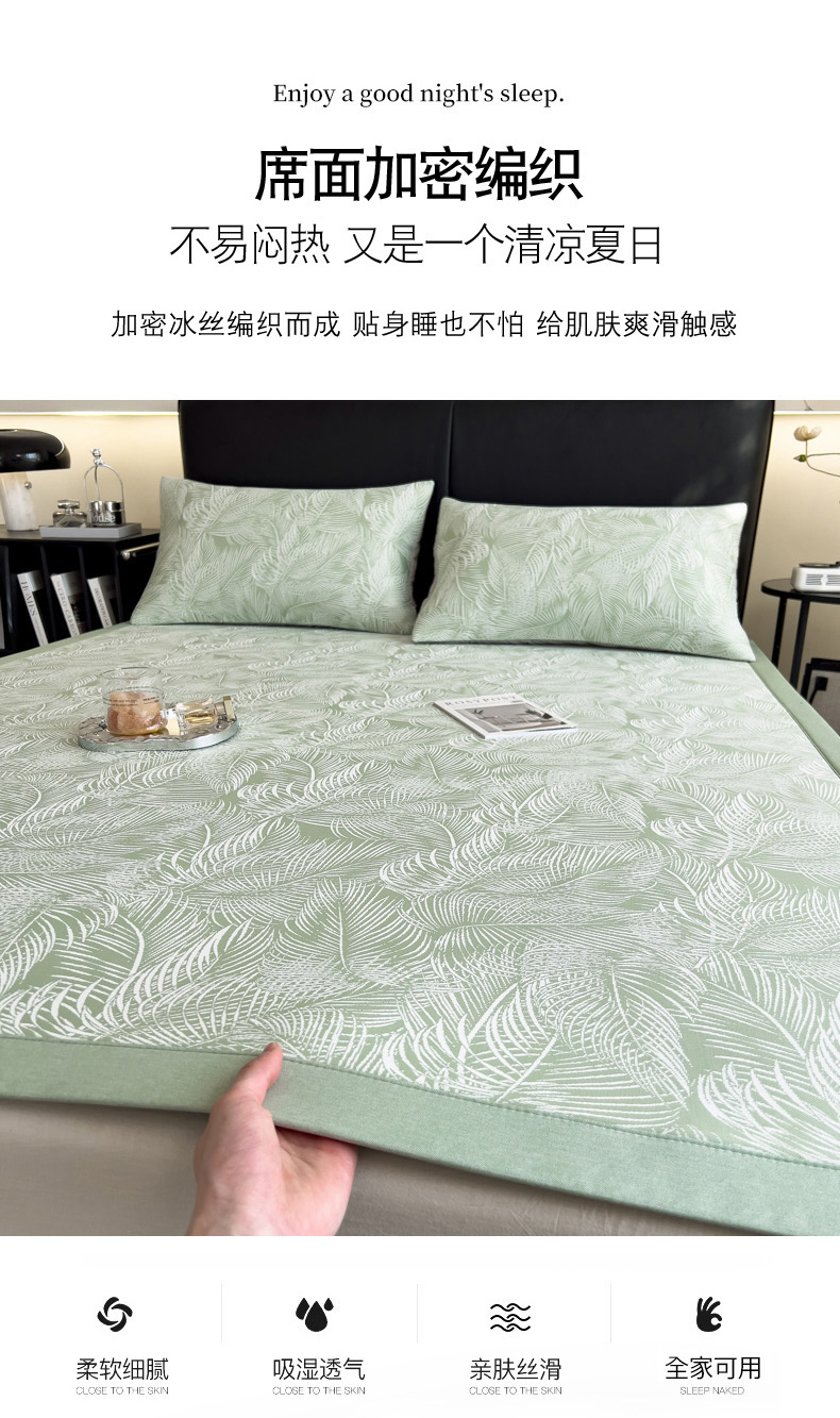 商品名称:慕尚家纺 2025新款1200D提花凉感席 提花席 羽毛纷飞绿