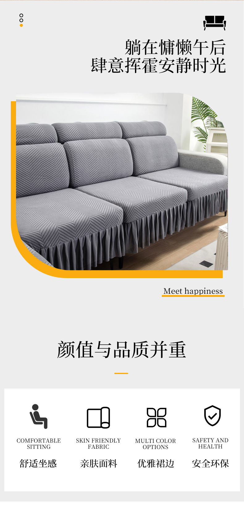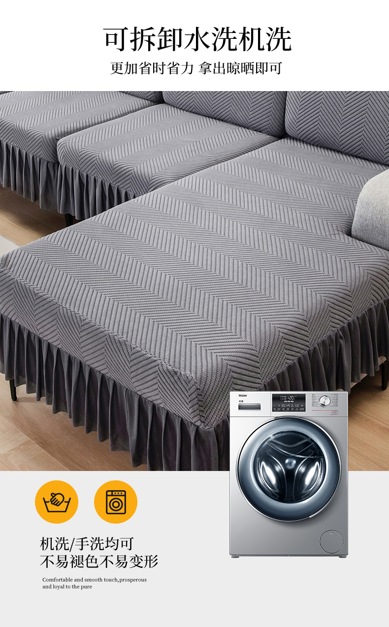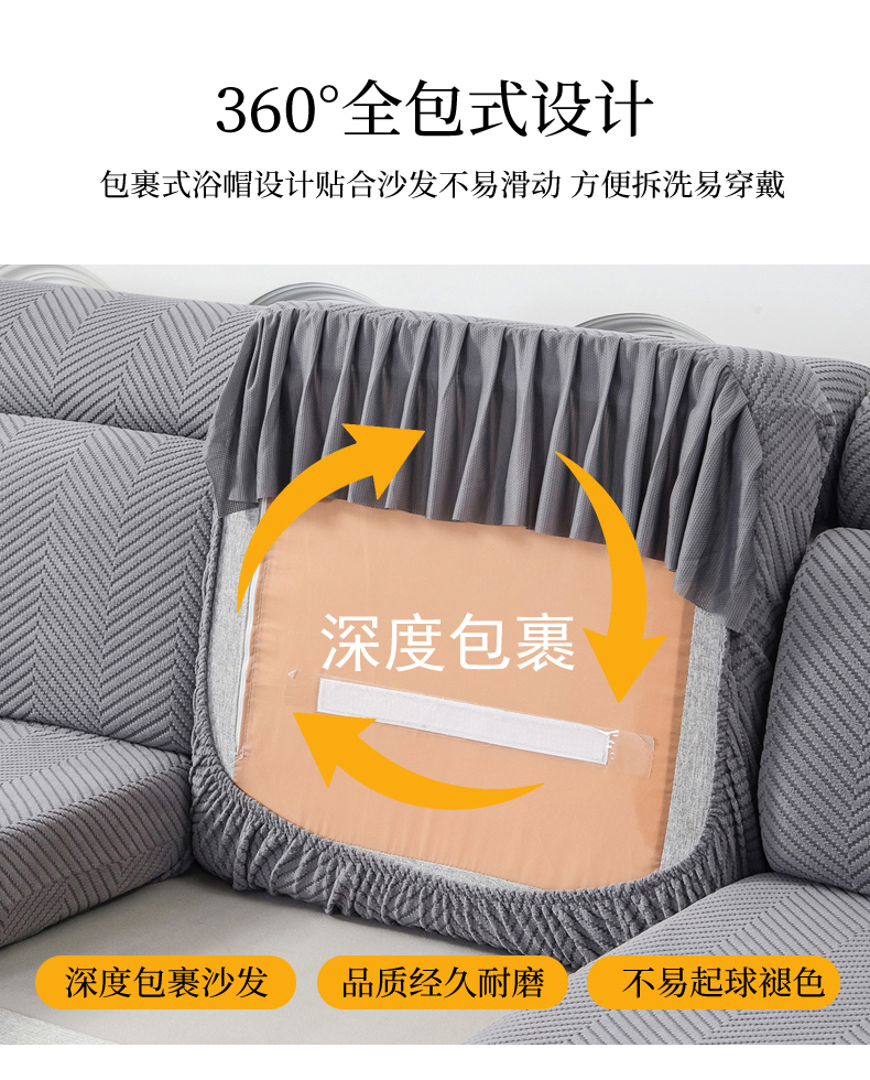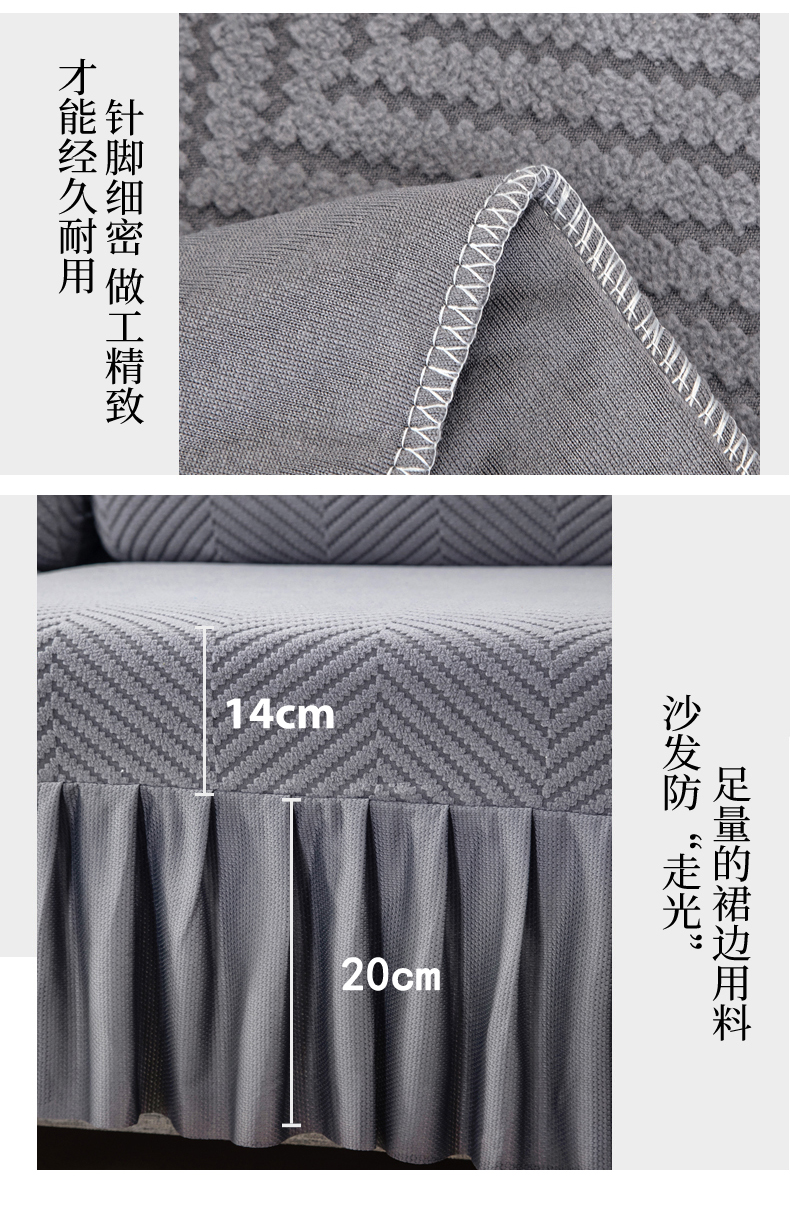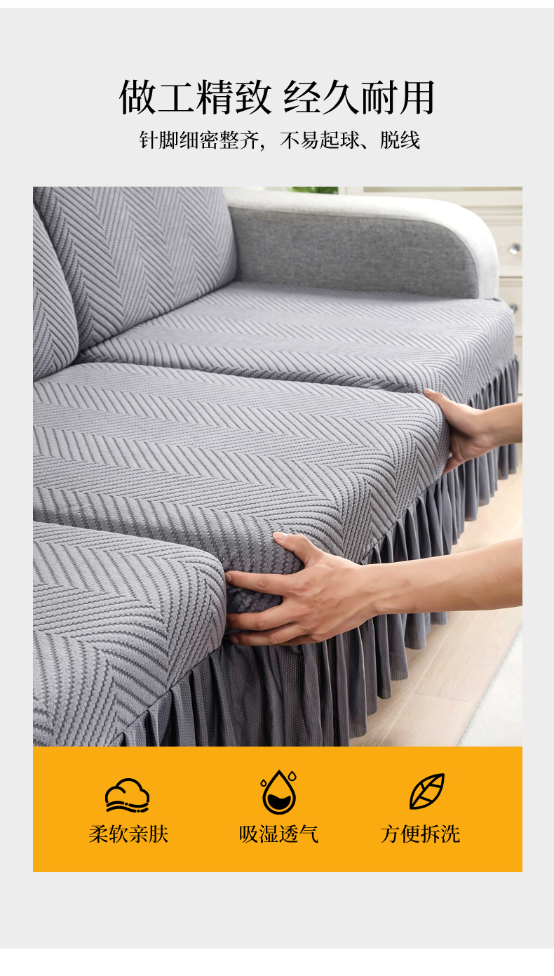 当前位置: 91家纺网 > 商品网购 > 居家布艺 > 坐垫/椅垫/沙发垫 > 沙发垫 > 千彤 2024新款裙边款弹力沙发套罩拉花绒人字纹系列沙发笠 深灰
