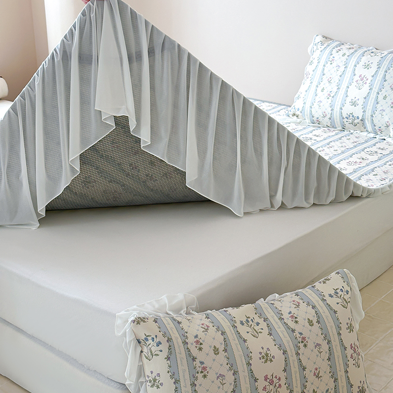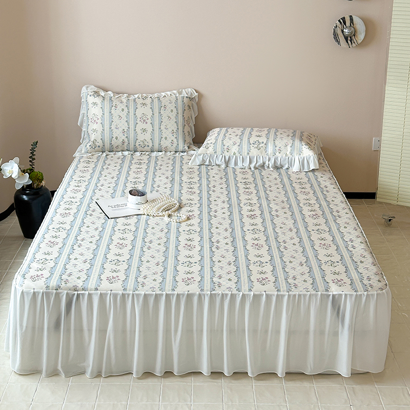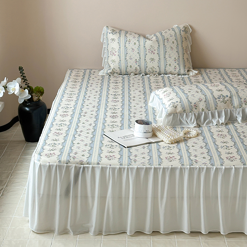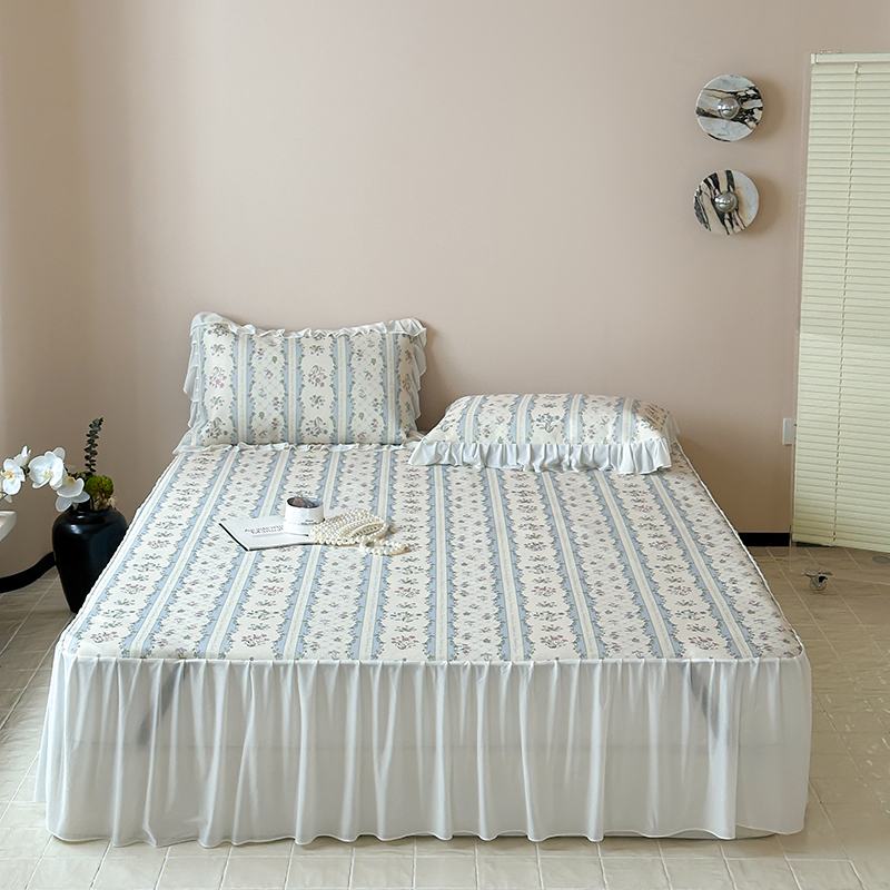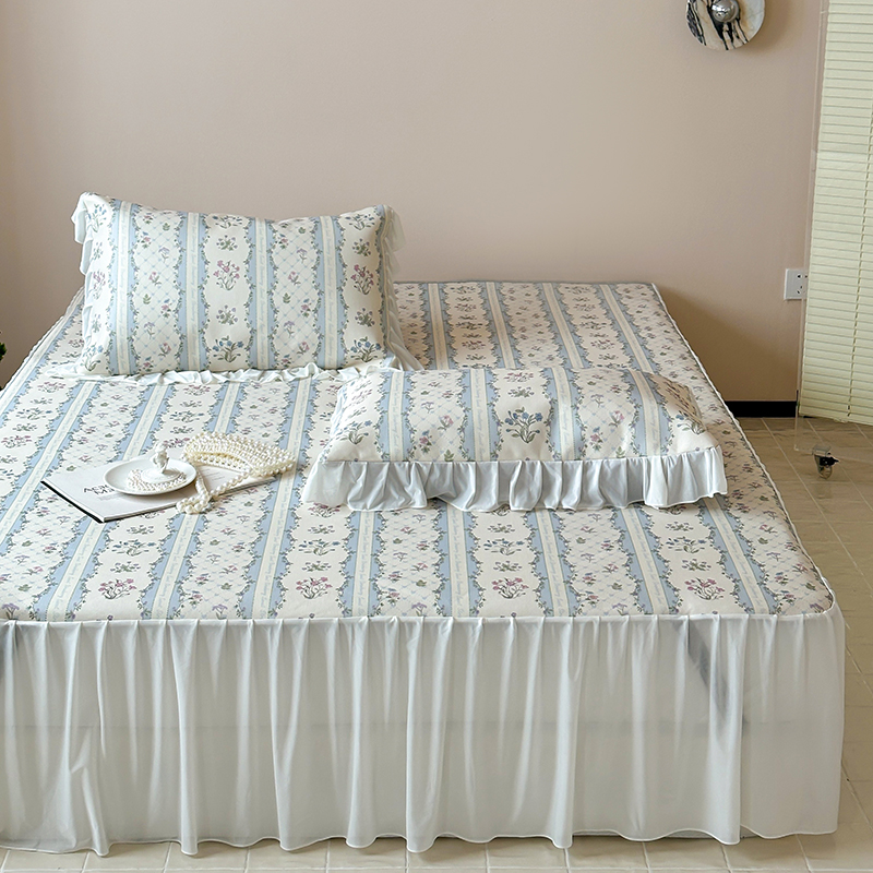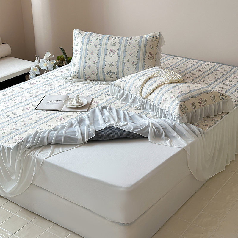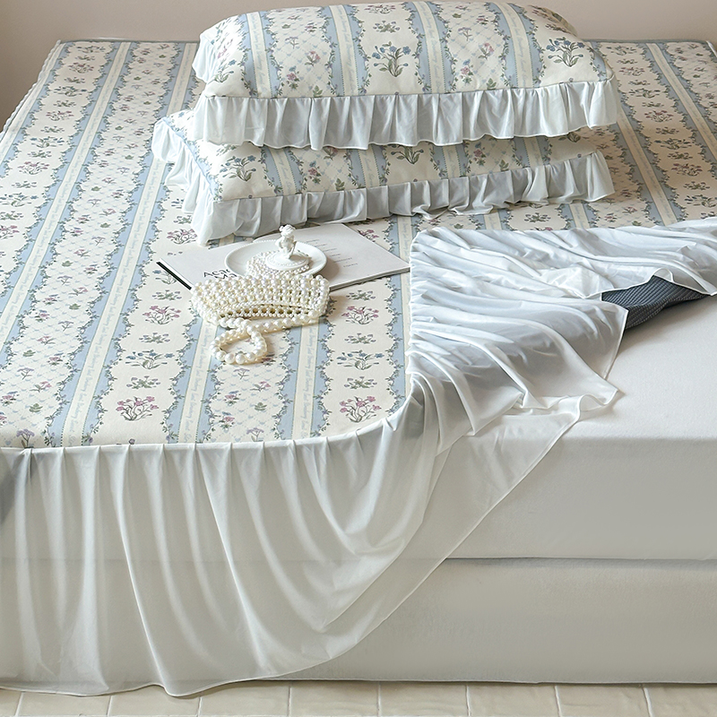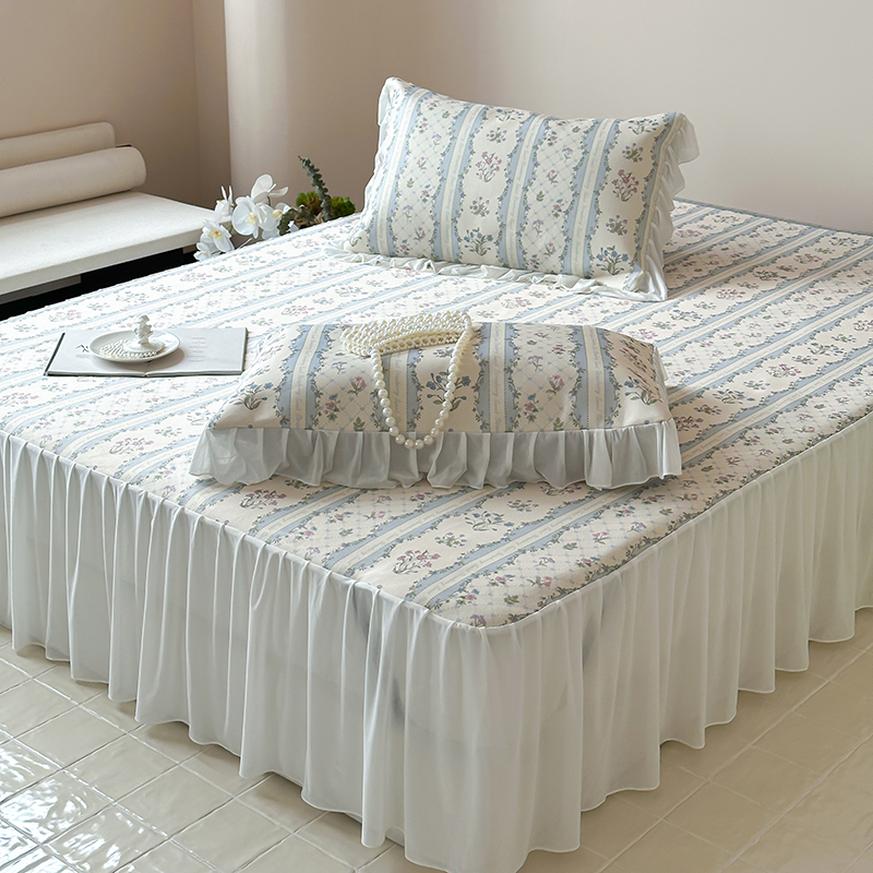 昔可 2024新款A类900D仙仙雪纺纱床裙款冰丝席三件套 夏日织梦