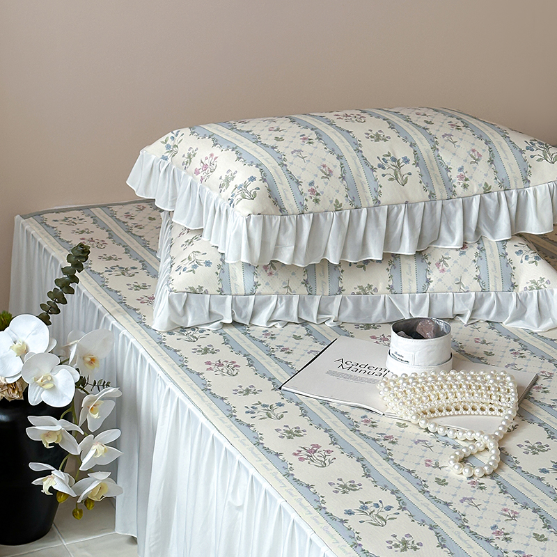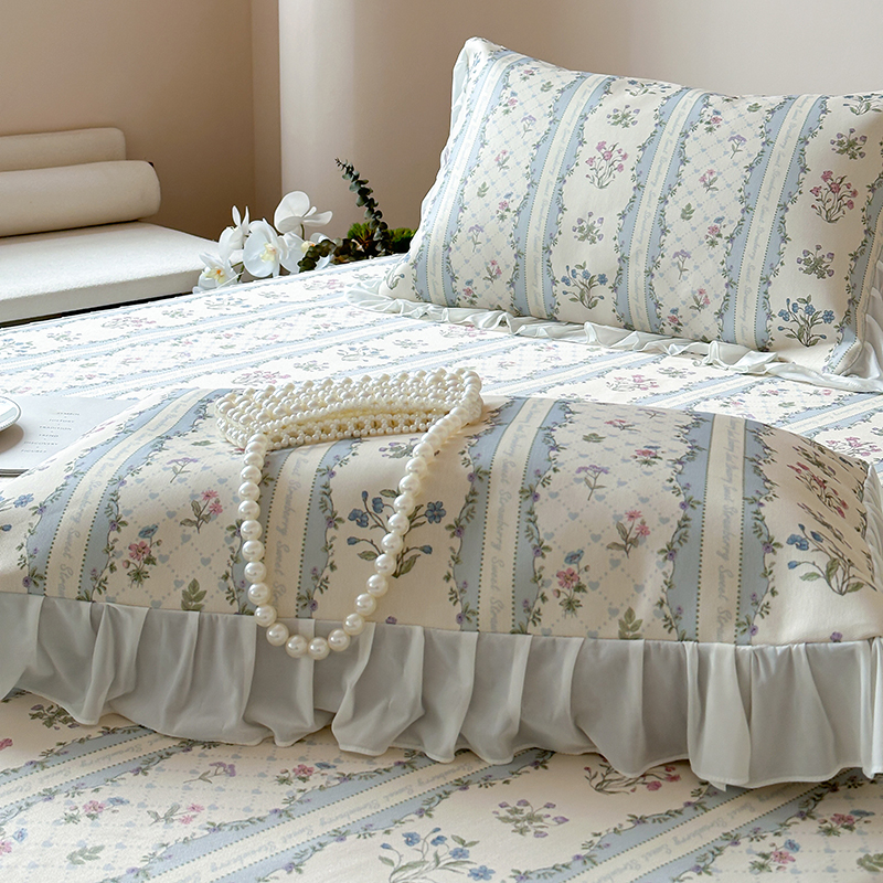 商品名称:昔可 2024新款A类900D仙仙雪纺纱床裙款冰丝席三件套 夏日织梦