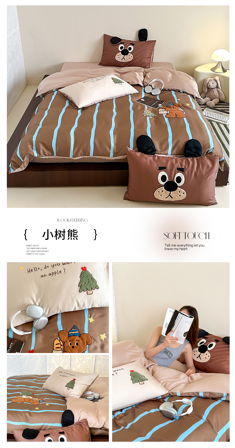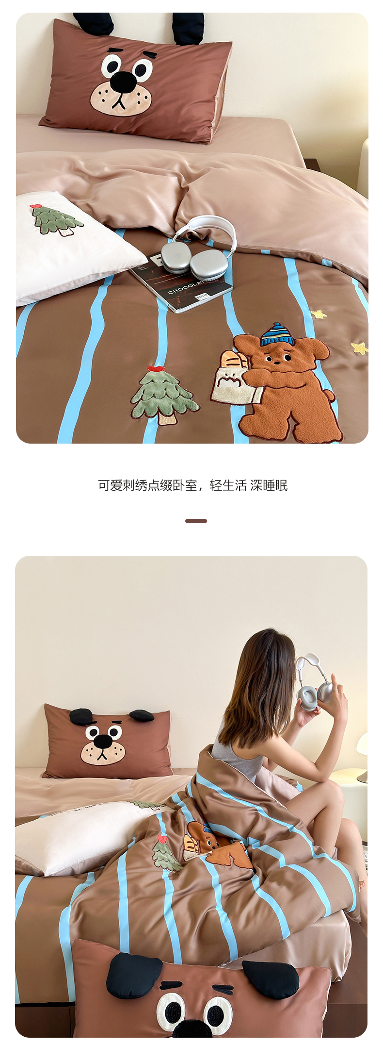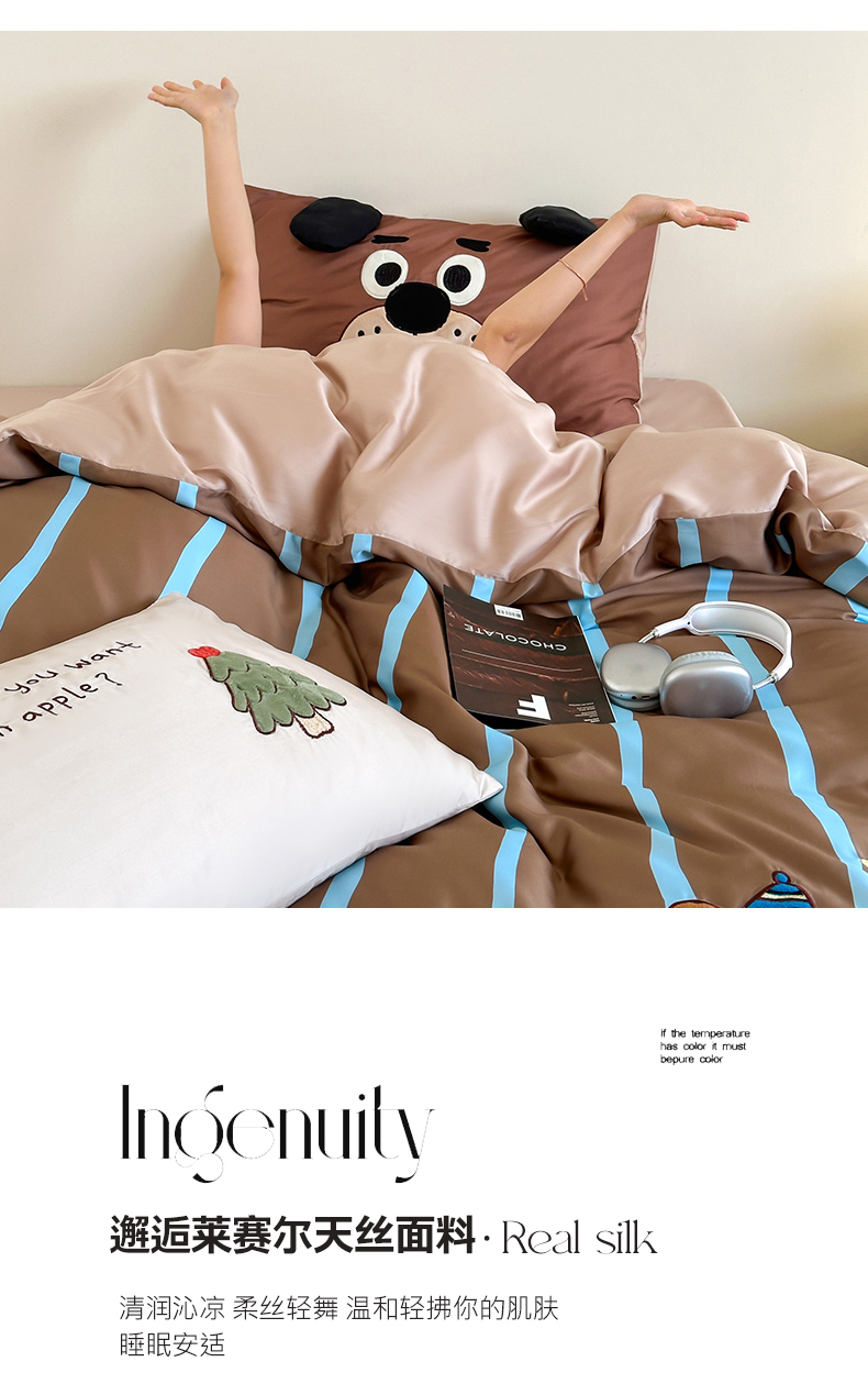 黛舒家居 2024新款60支兰精天丝数码印花卡通刺绣四件套 小树熊
