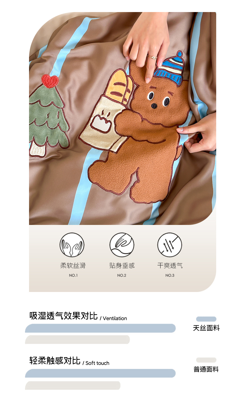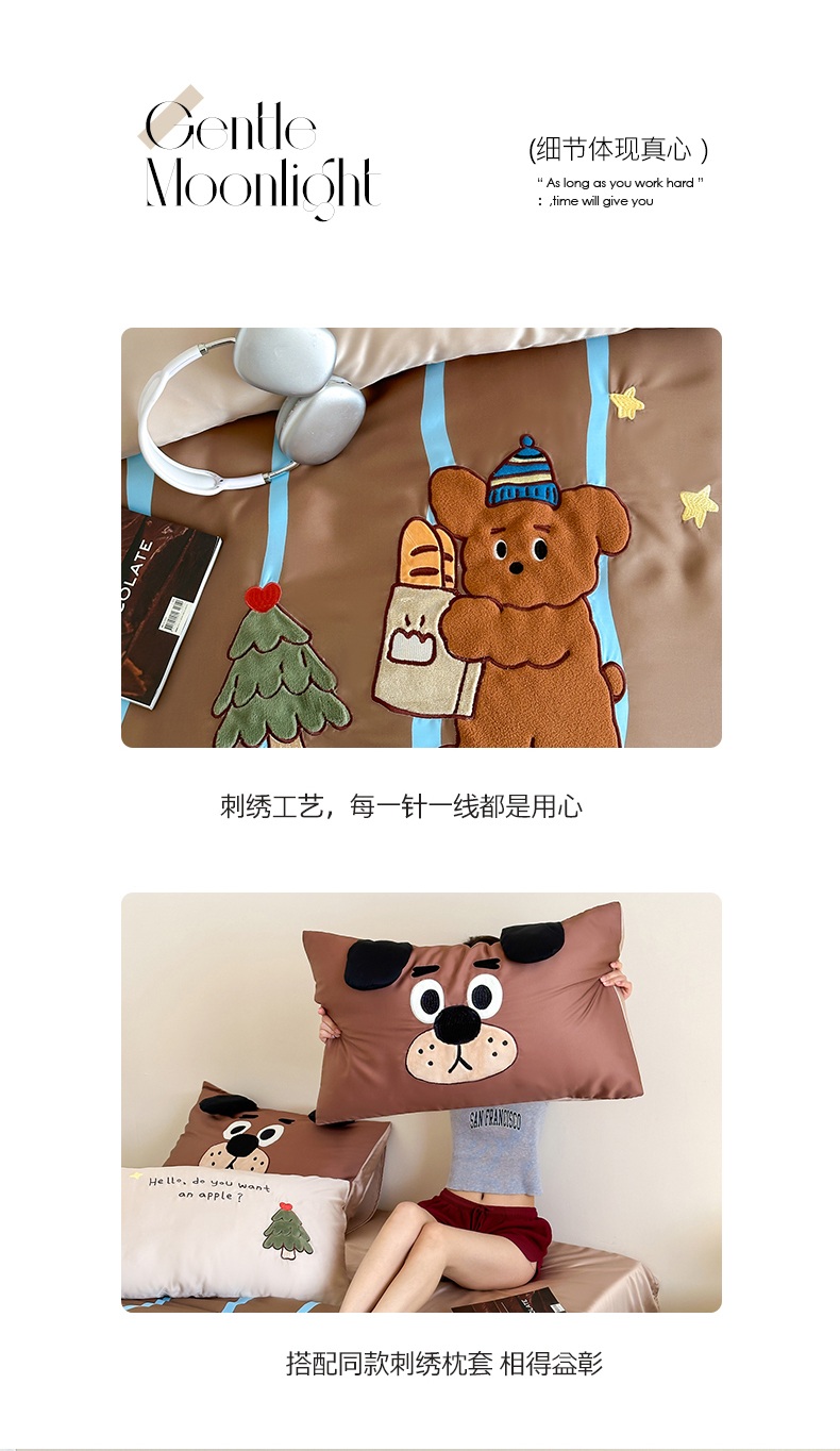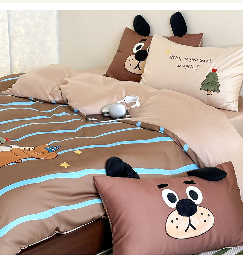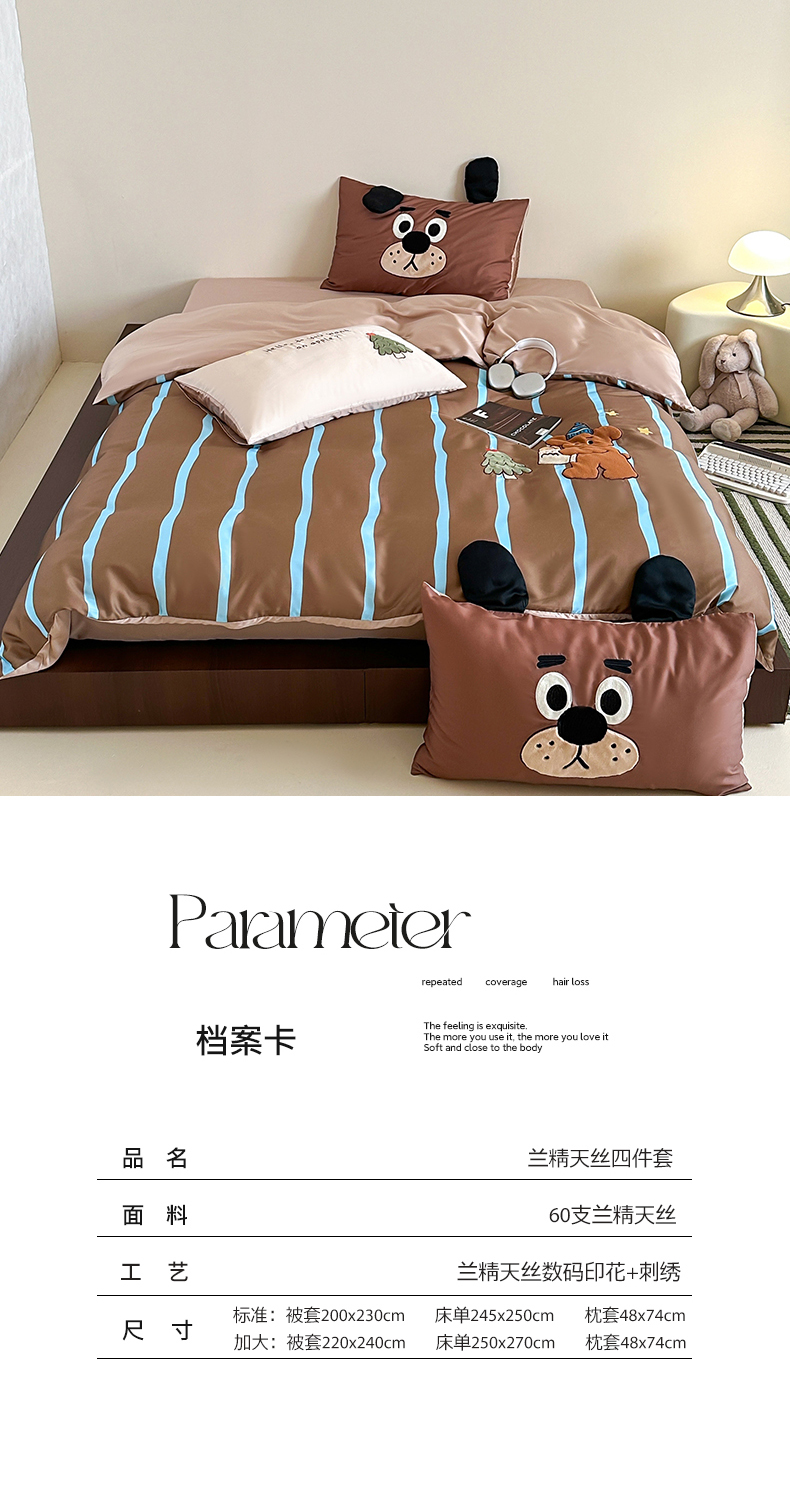 黛舒家居 2024新款60支兰精天丝数码印花卡通刺绣四件套 小树熊