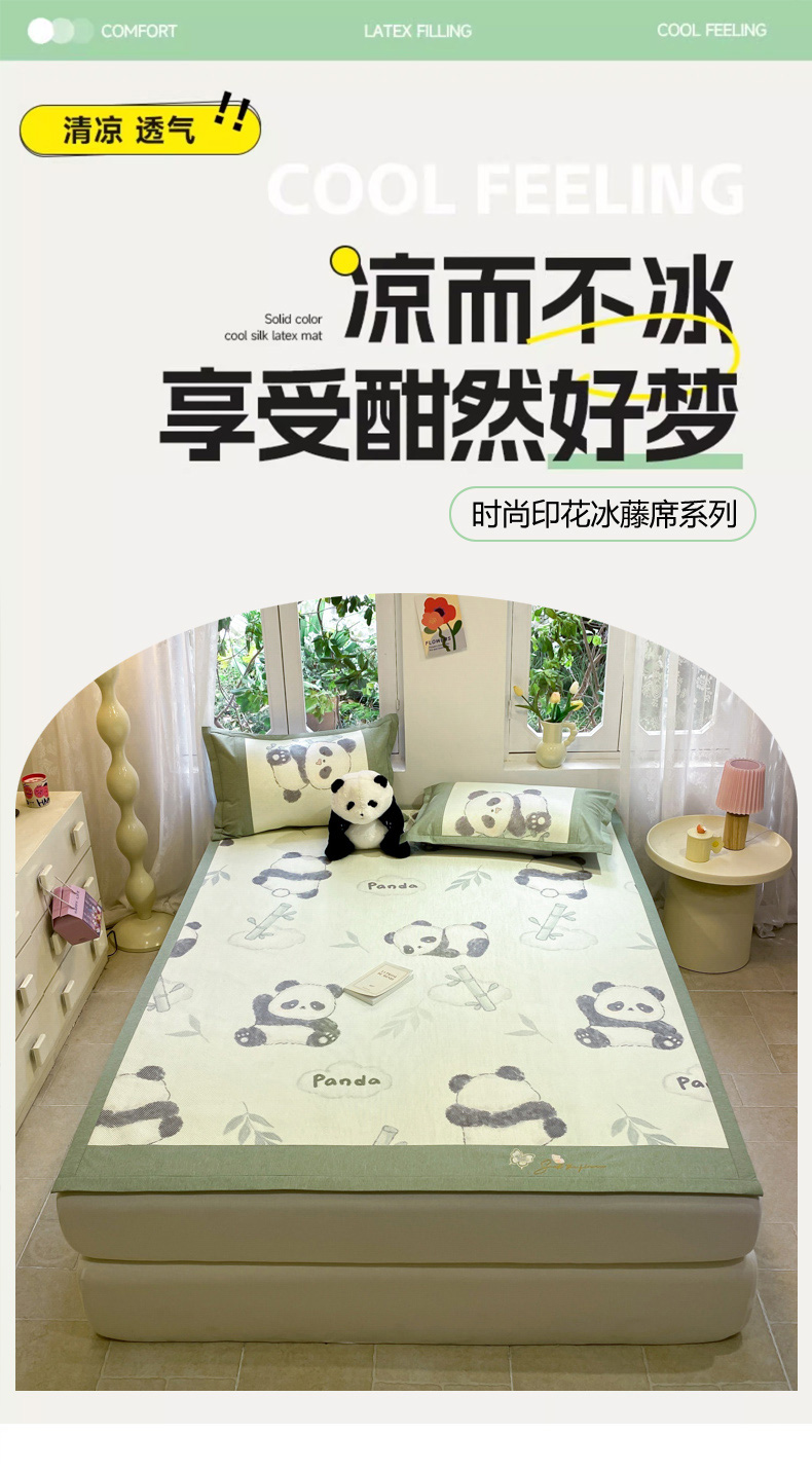 慕澄2024新款A类时尚印花刺绣冰藤凉席 床席款-熊猫戏竹