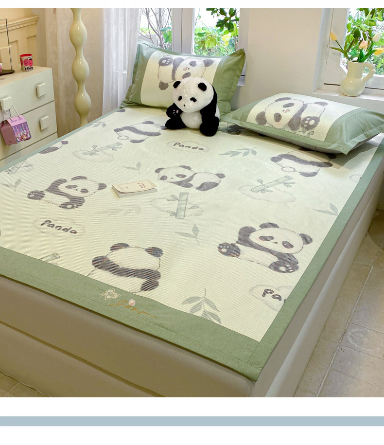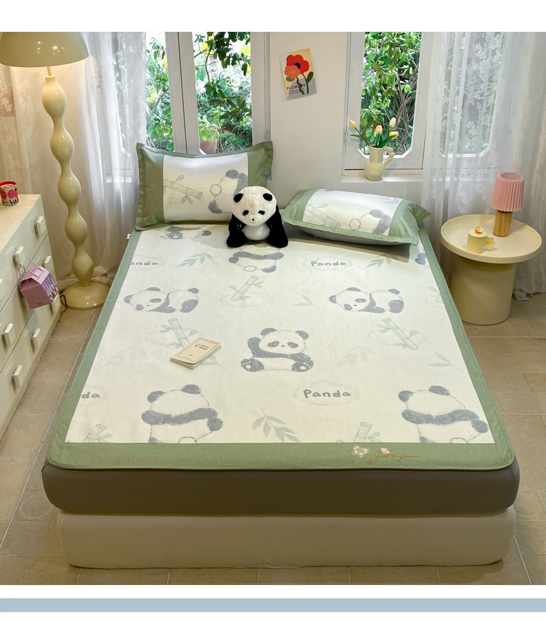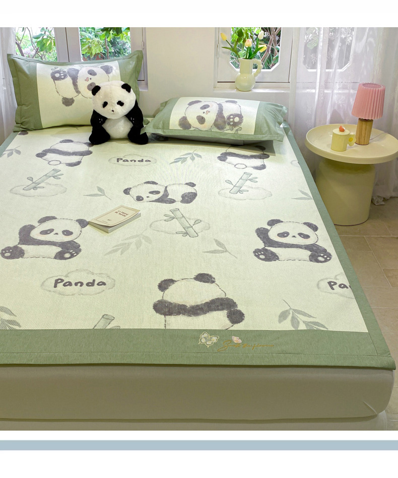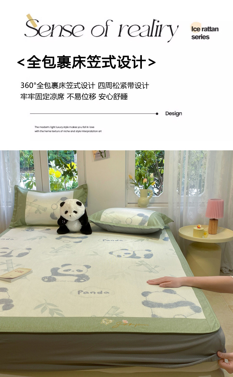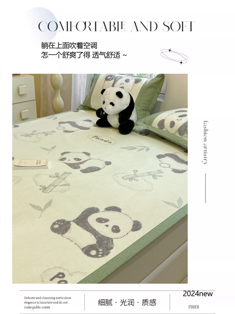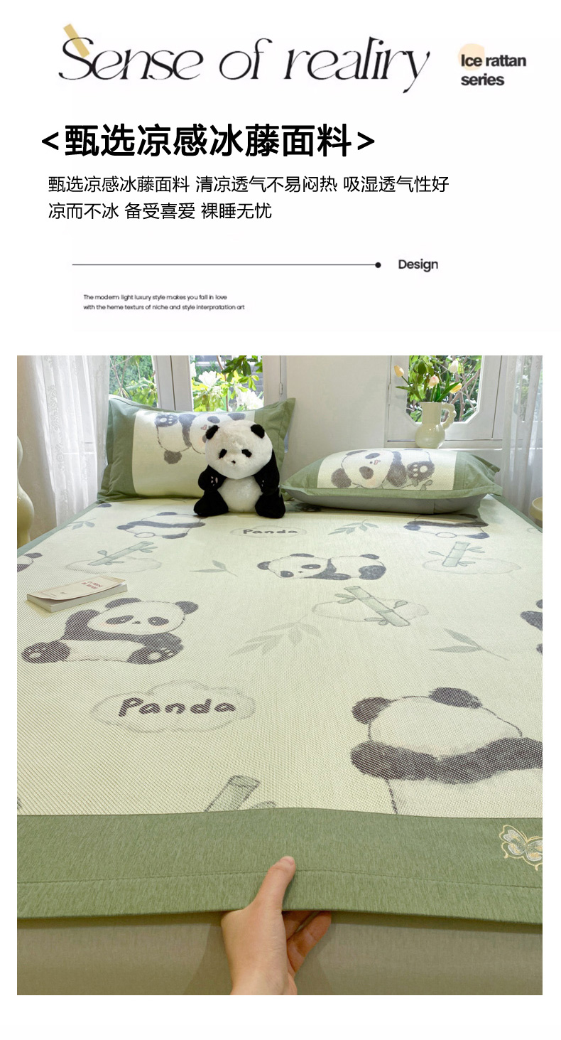 商品名称:慕澄2024新款A类时尚印花刺绣冰藤凉席 床席款-熊猫戏竹