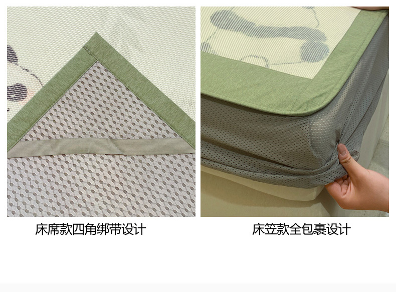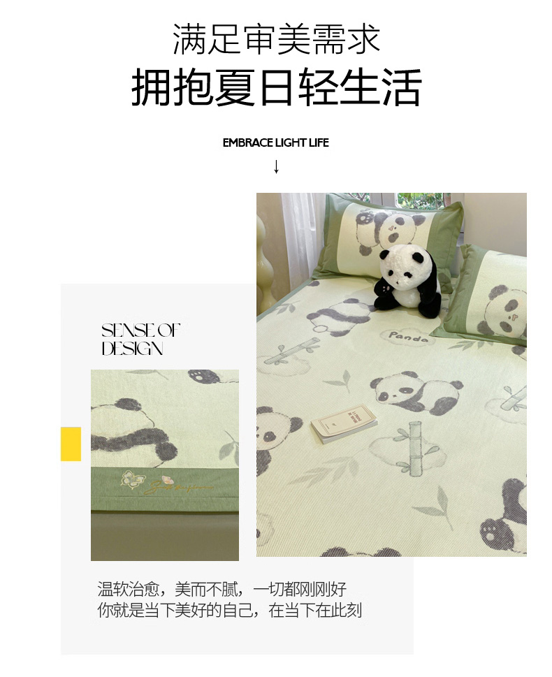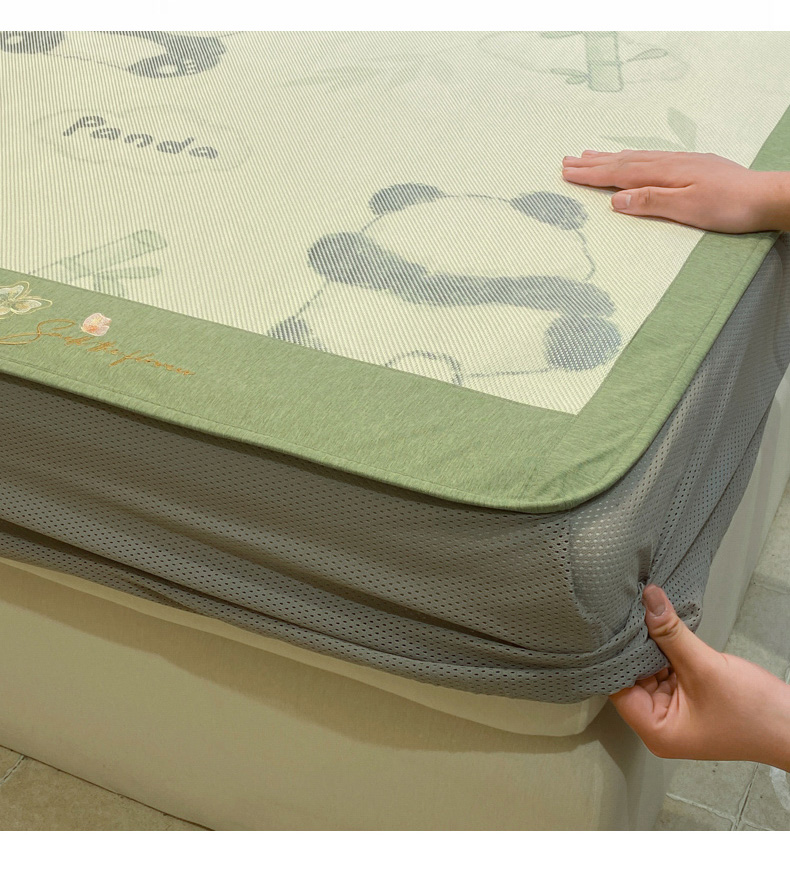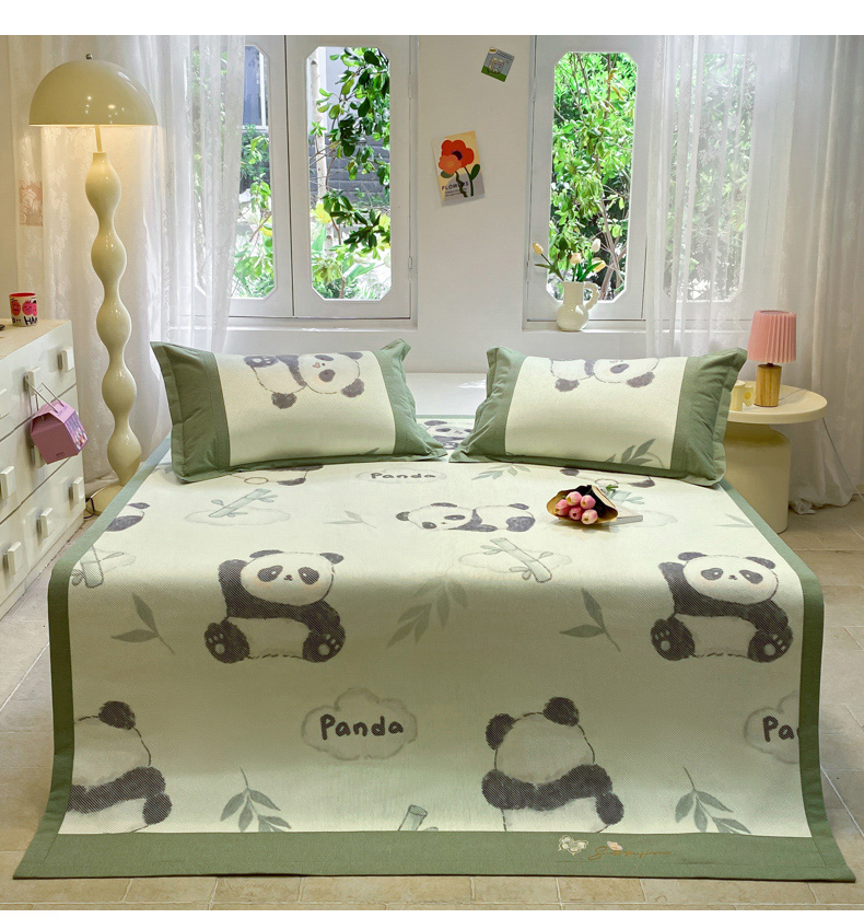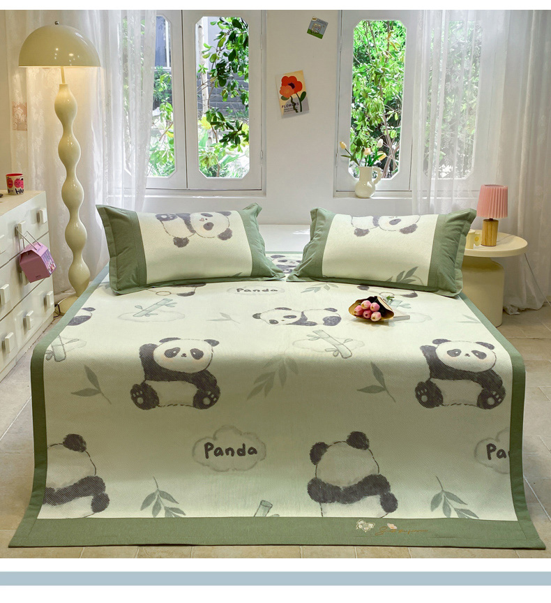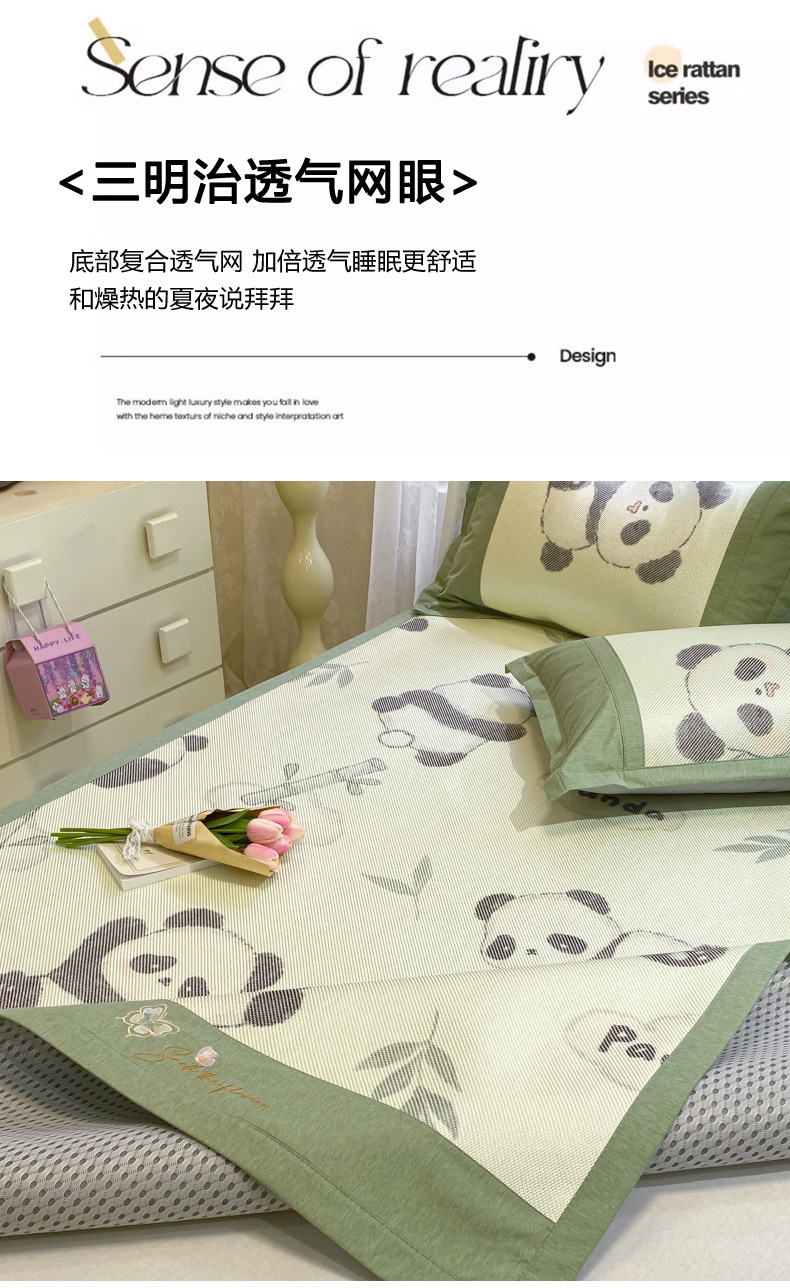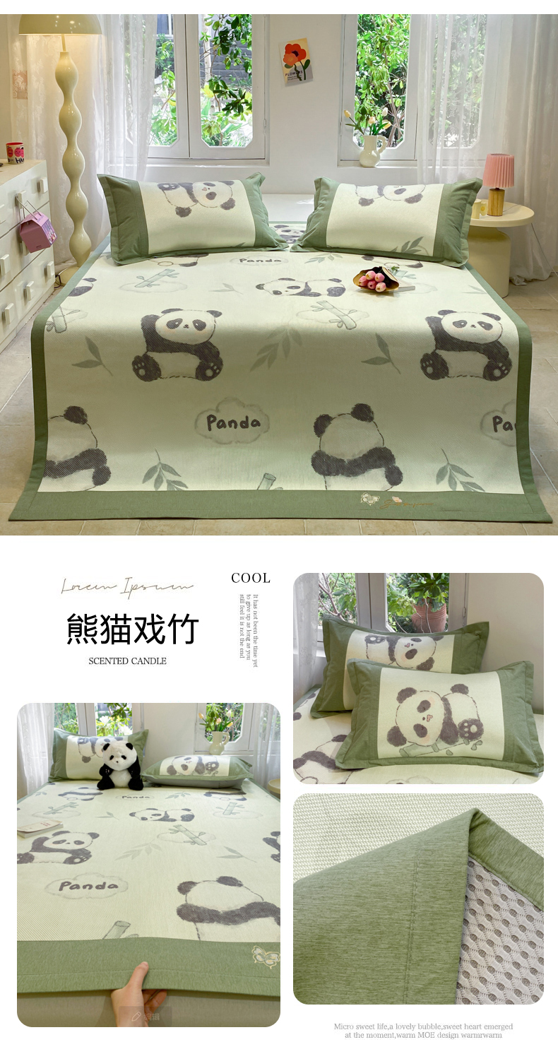 商品名称:慕澄2024新款A类时尚印花刺绣冰藤凉席 床席款-熊猫戏竹