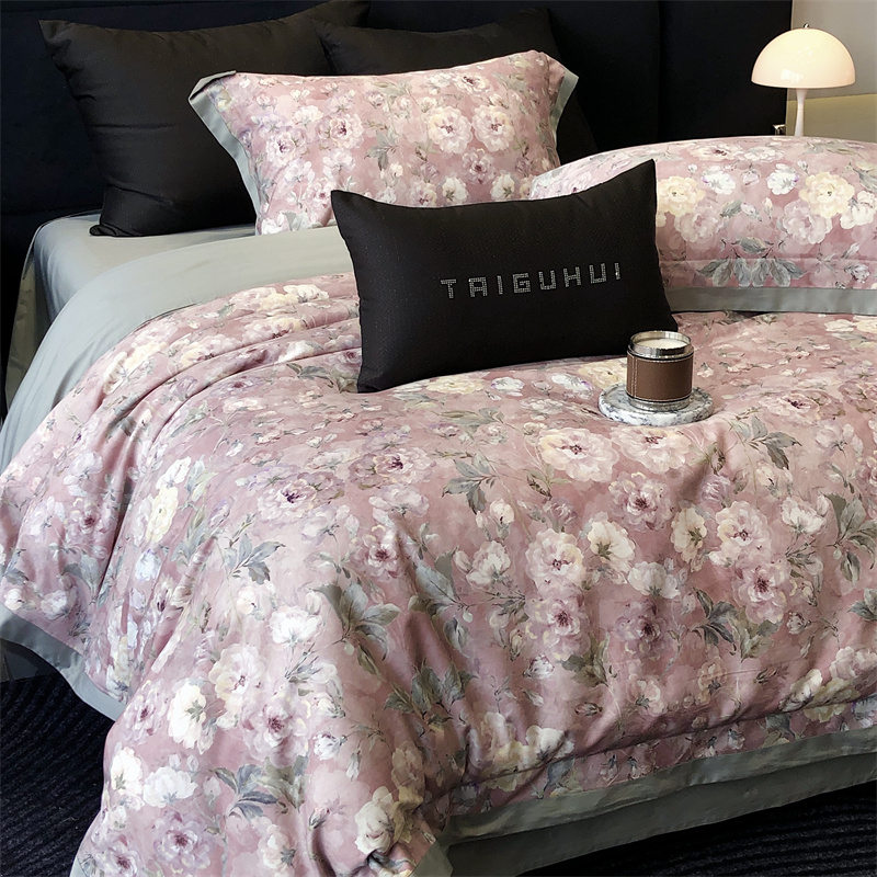 (总)太古汇家居 2025新款活性数码印花四件套,丽奥娜-松石绿,丽奥娜-杏子灰,丽奥娜-樱落紫,莉安娜-粉,莉安娜-卡其,莉安娜-绿,西莉娅-淡紫,西莉娅-粉色