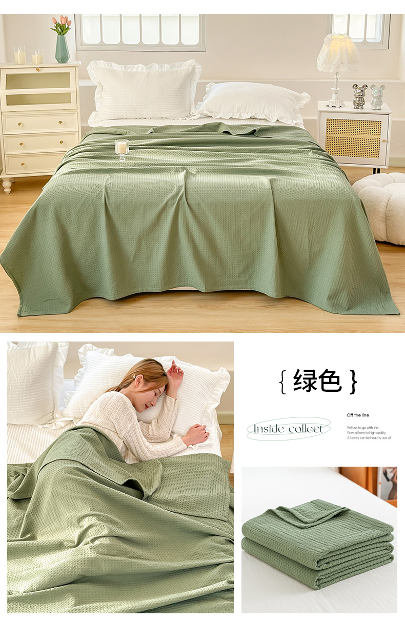 商品名称:乐家毛巾被(工厂自产自销) 2024新款全棉华夫格毛巾被 绿色