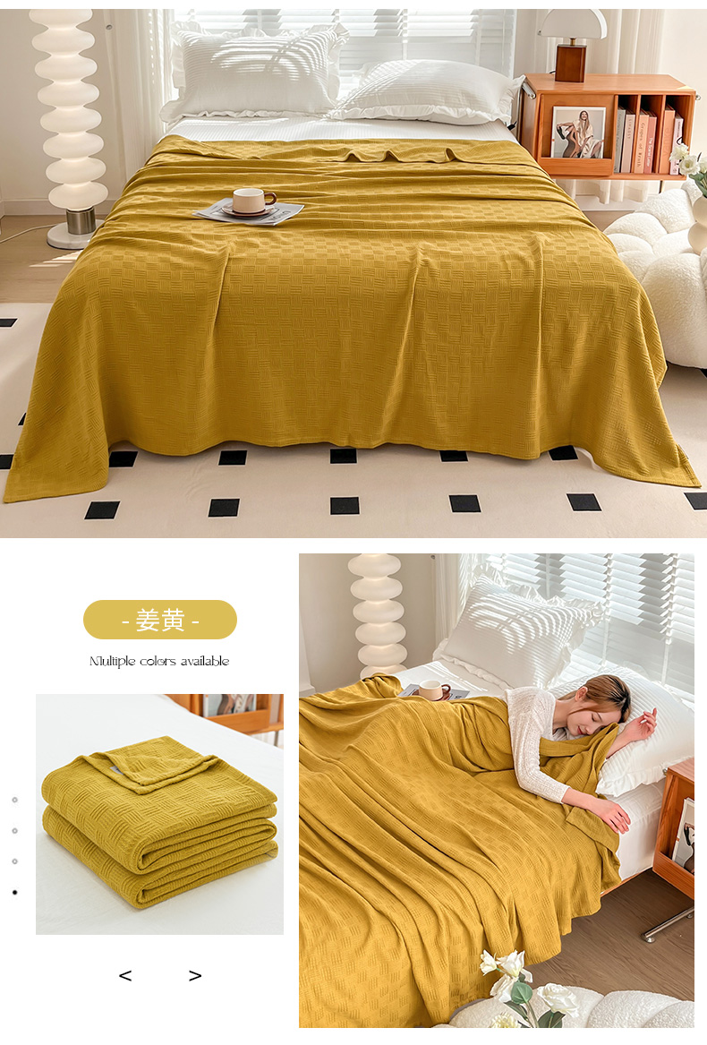 商品名称:乐家毛巾被(工厂自产自销) 2024新款全棉针织线毯 线毯姜黄