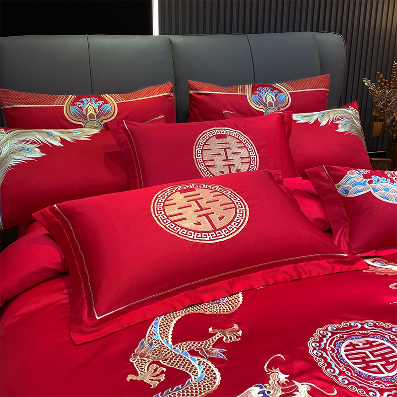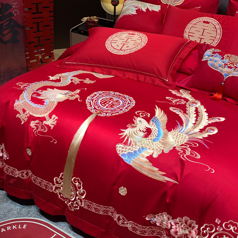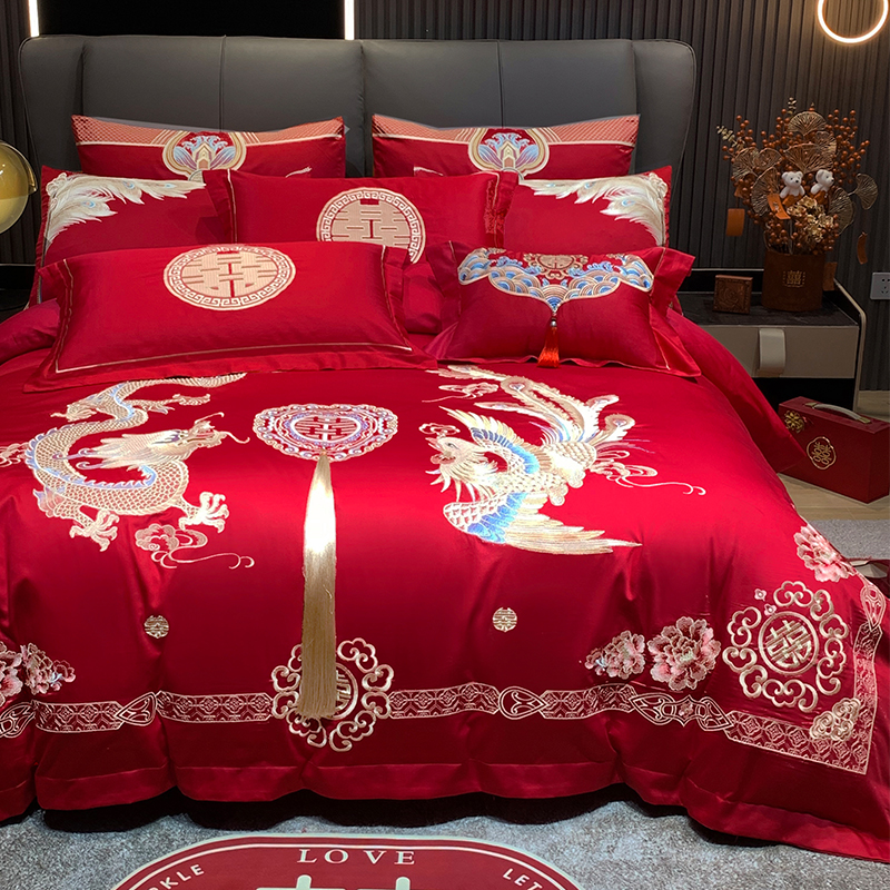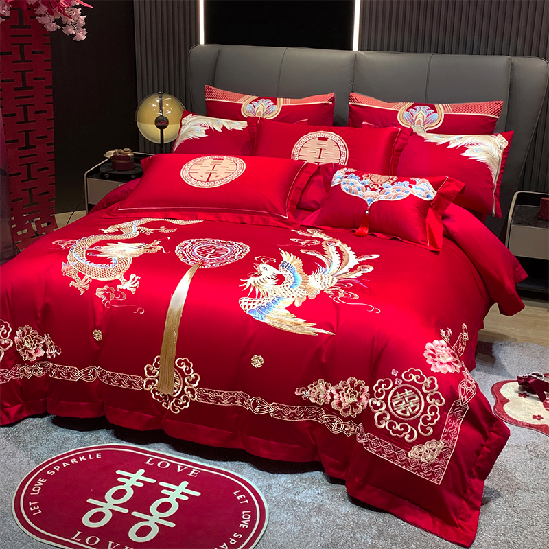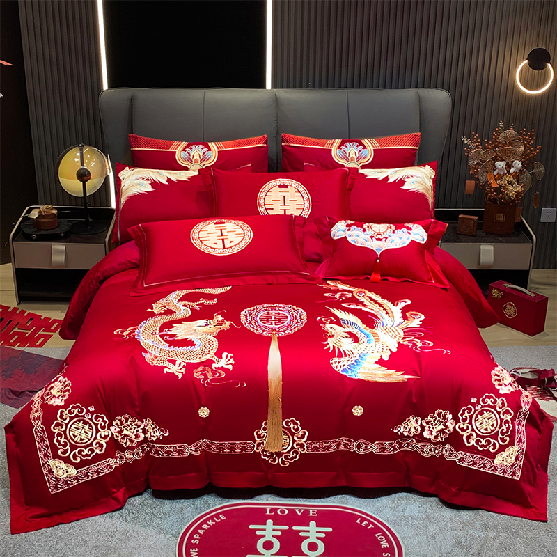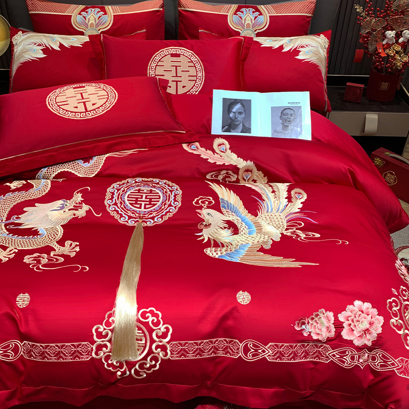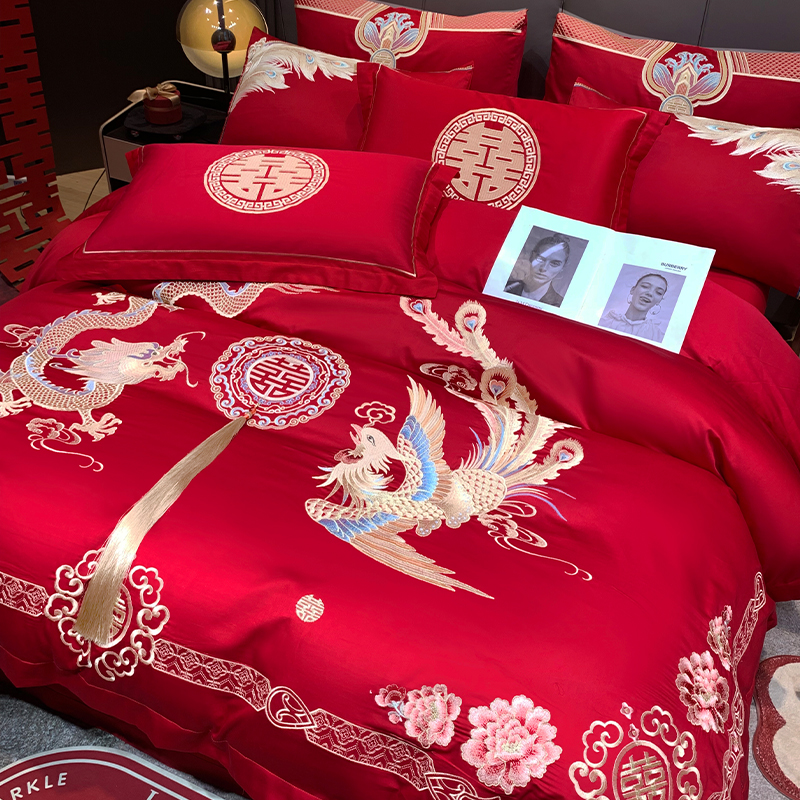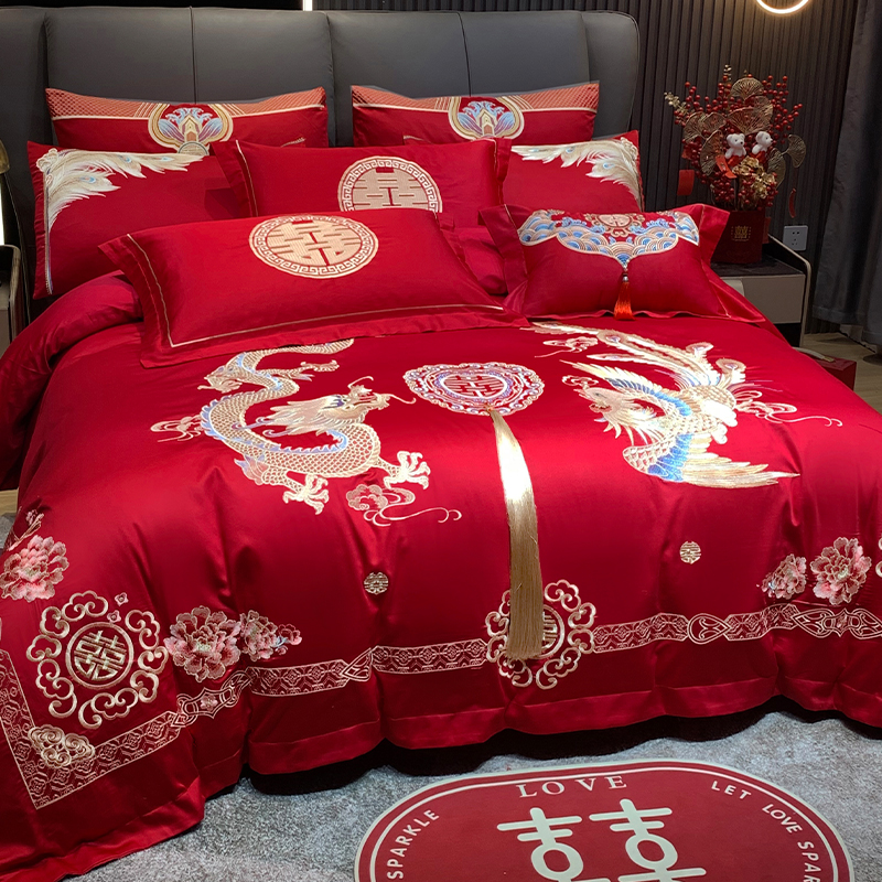 当前位置: 91家纺网 > 商品网购 > 床品套件 > 多件套 > 多件套 > 用心 2024新款全棉高端婚庆绣花四件套龙凤百年