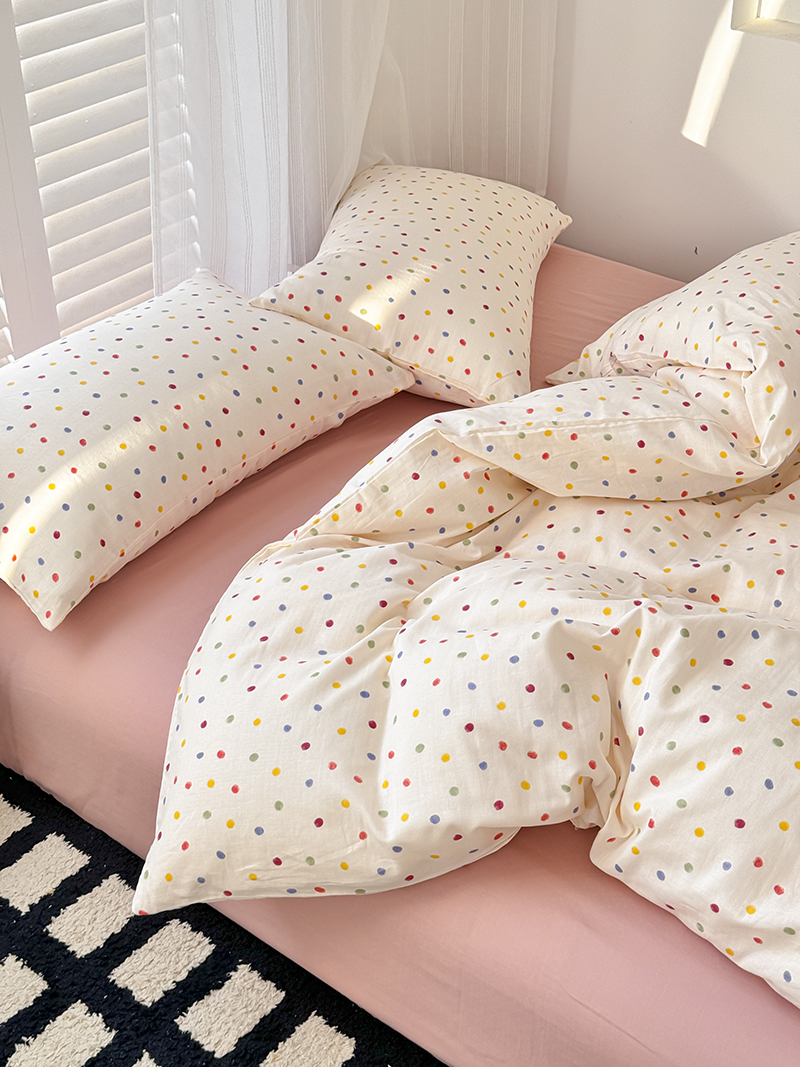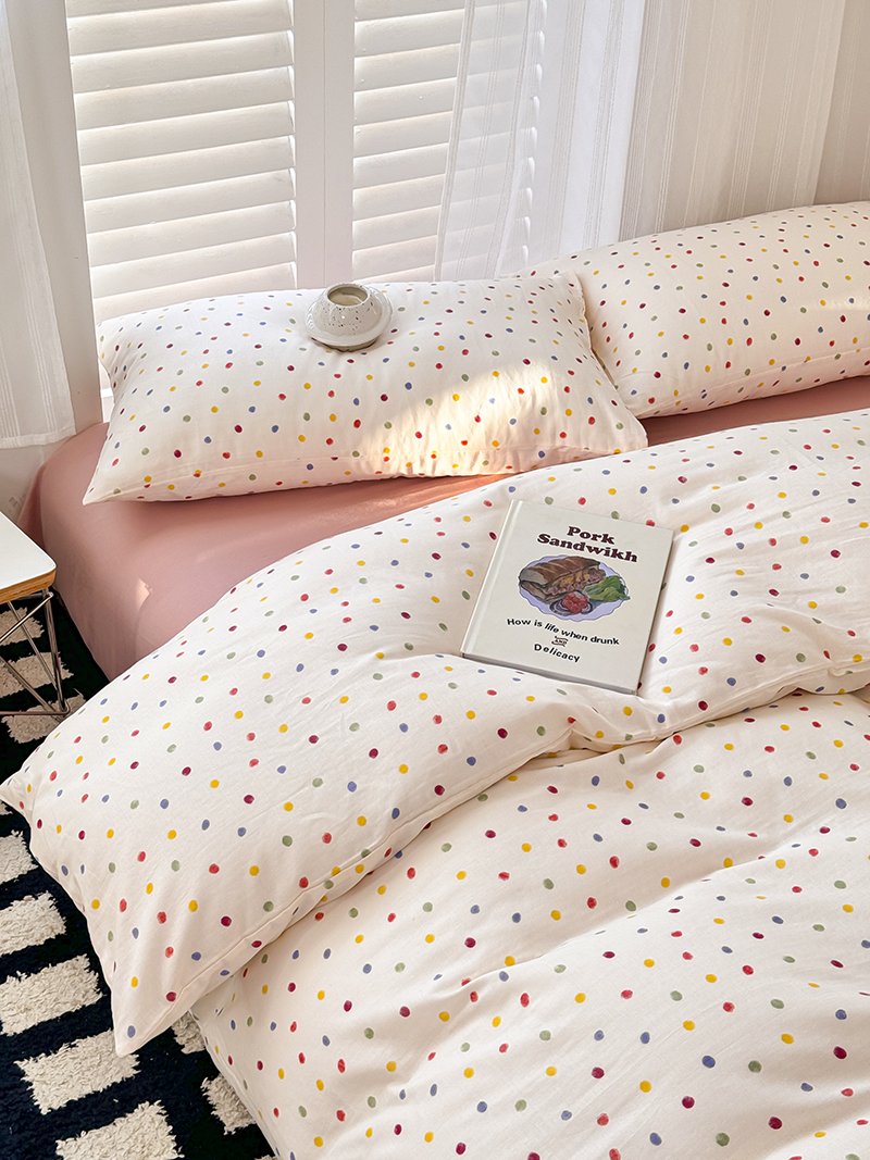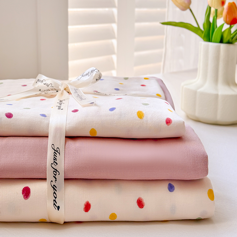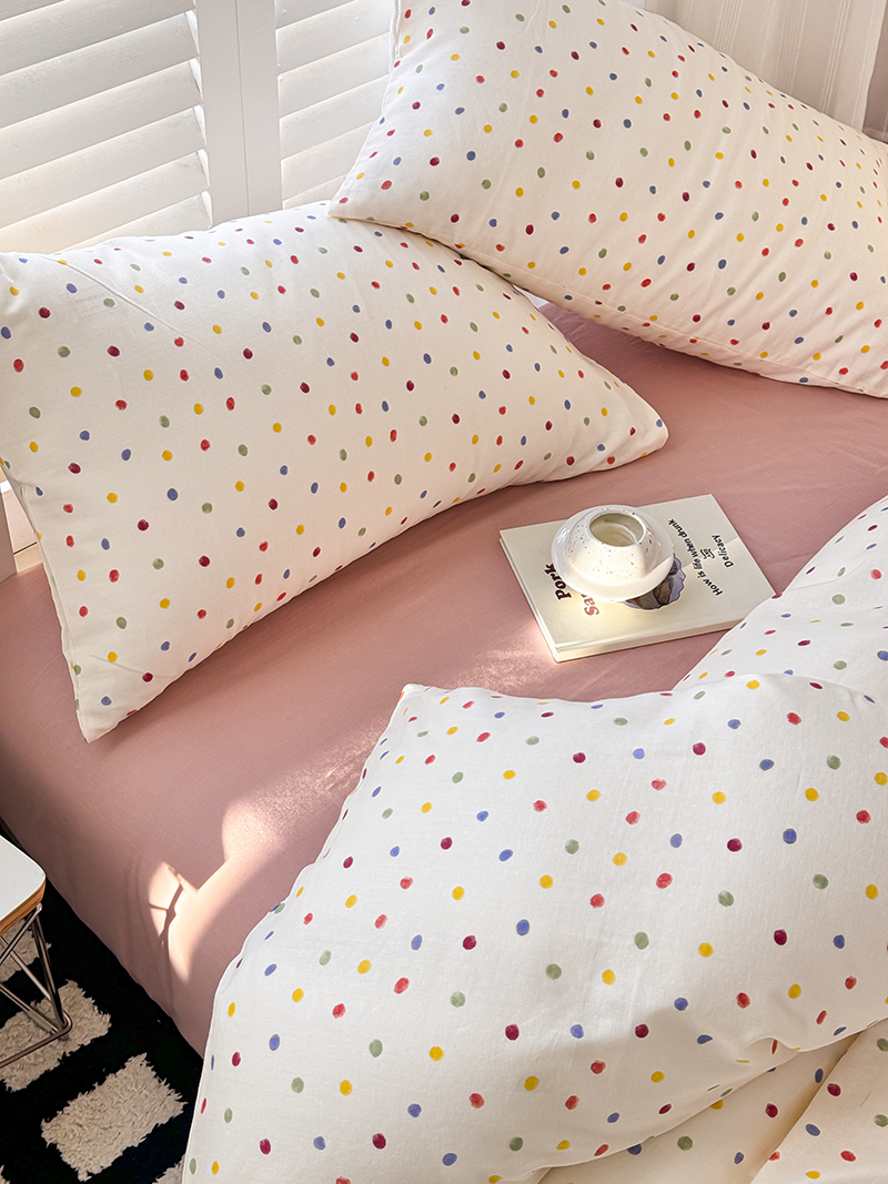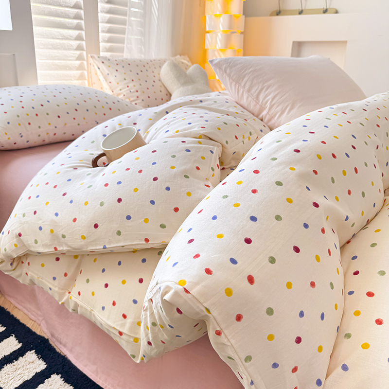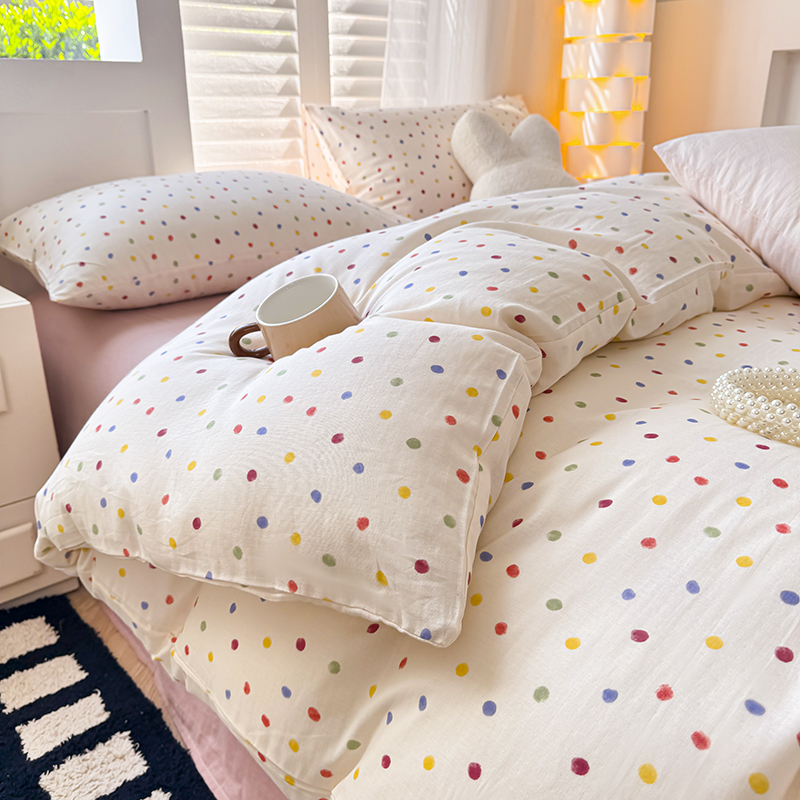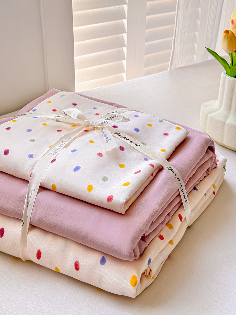 当前位置: 91家纺网 > 商品网购 > 床品套件 > 四件套 > 全棉普通四件套 > 麦伦家居 2024新款A类全棉双层纱系列四件套-影棚图 彩啵啵