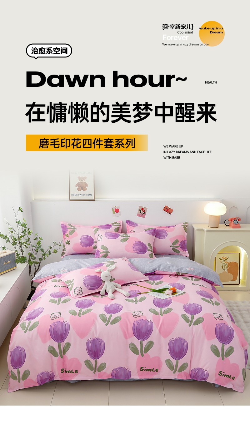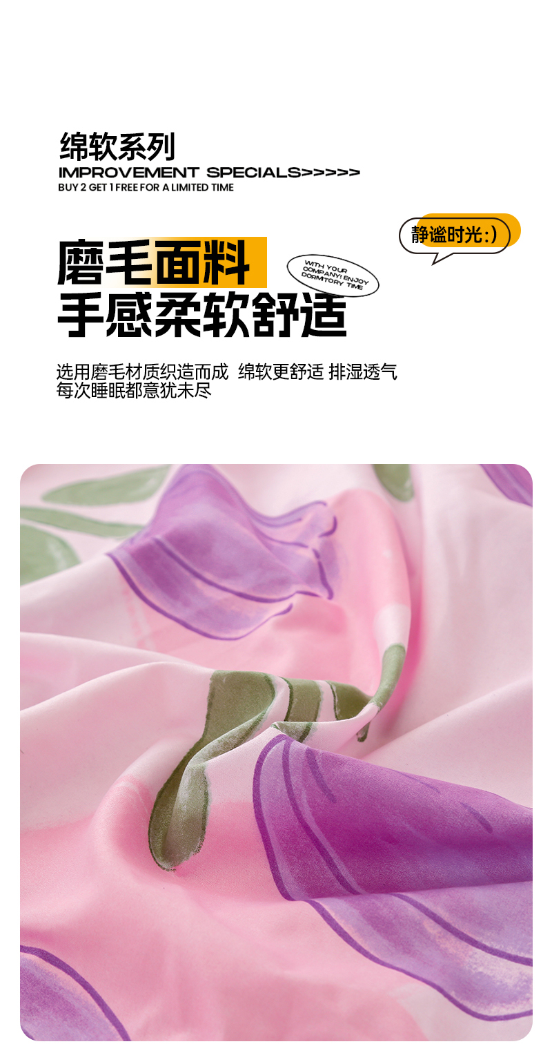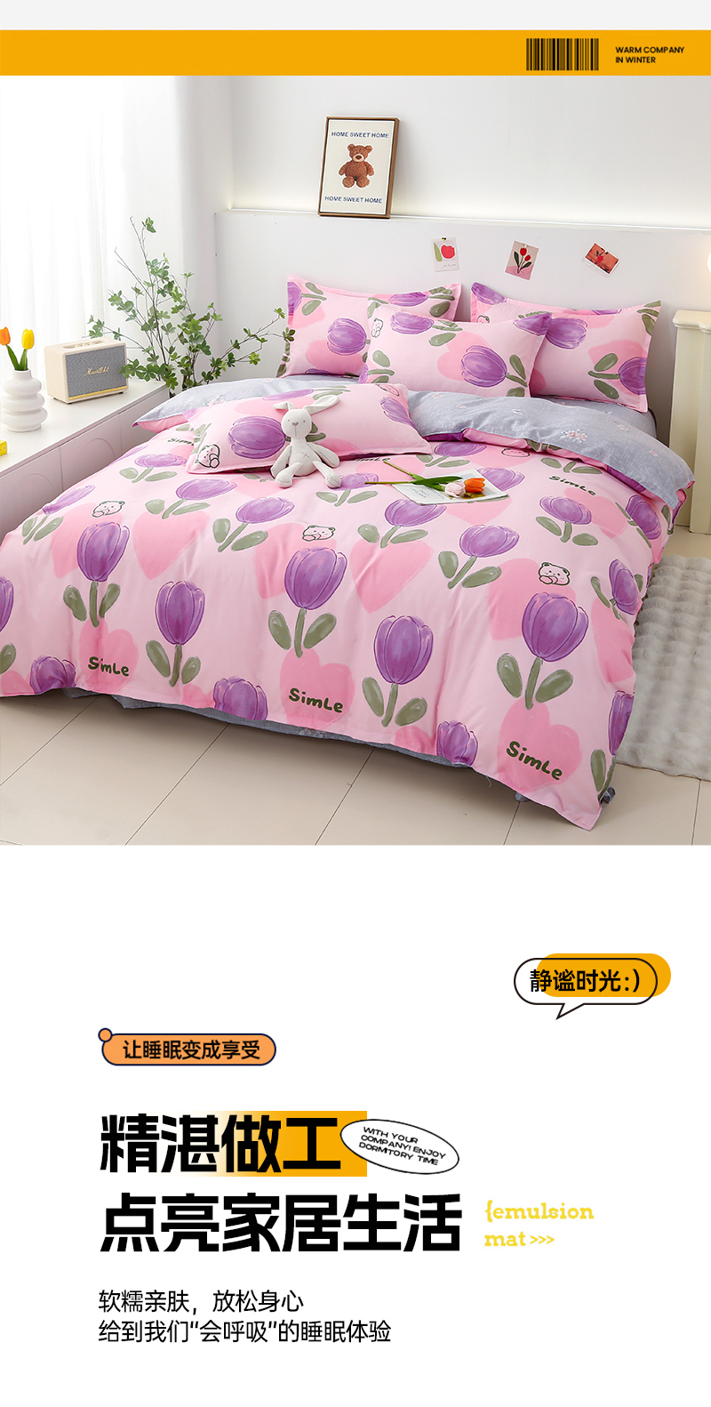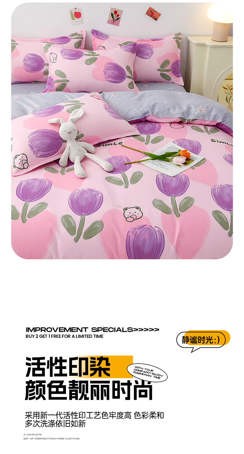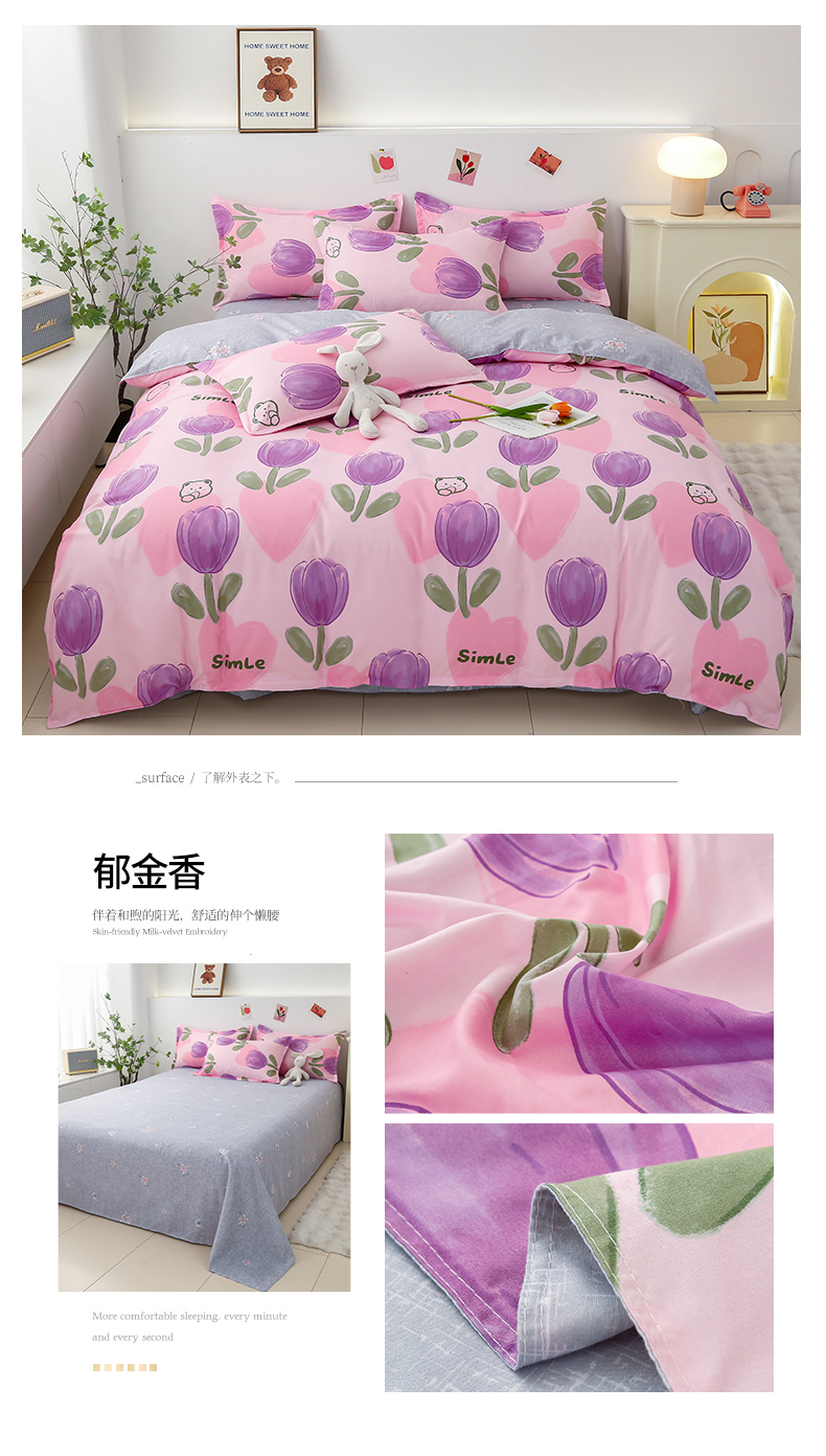 当前位置: 91家纺网 > 商品网购 > 床品套件 > 四件套 > 磨毛活性四件套 > 曼璐家纺 2025新款芦荟棉磨毛印花四件套 郁金香