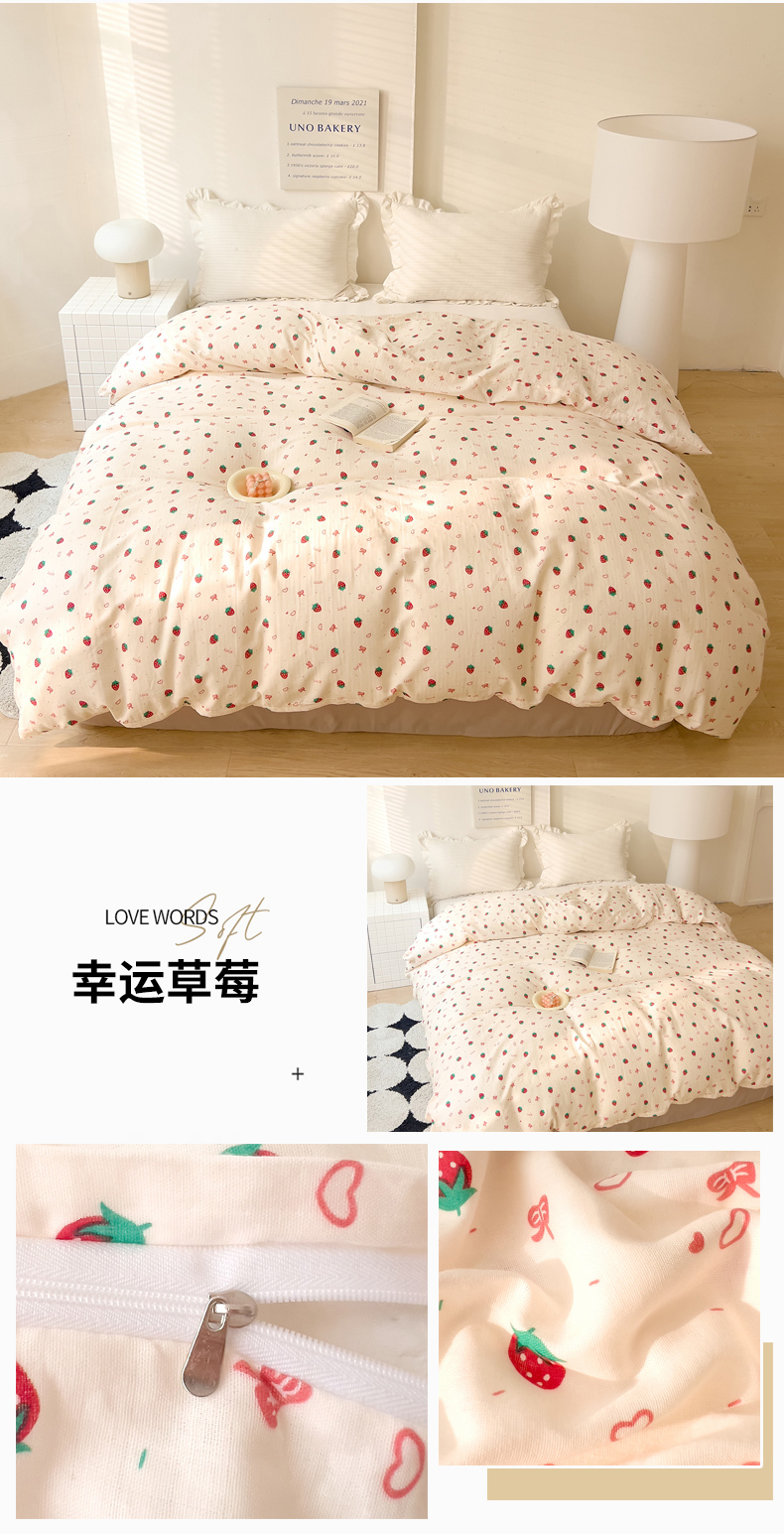 商品名称:DoDo 兜兜 2024新款全棉双层纱印花被套 幸运草莓