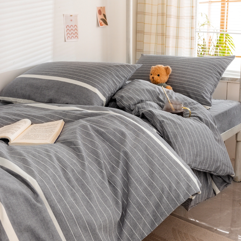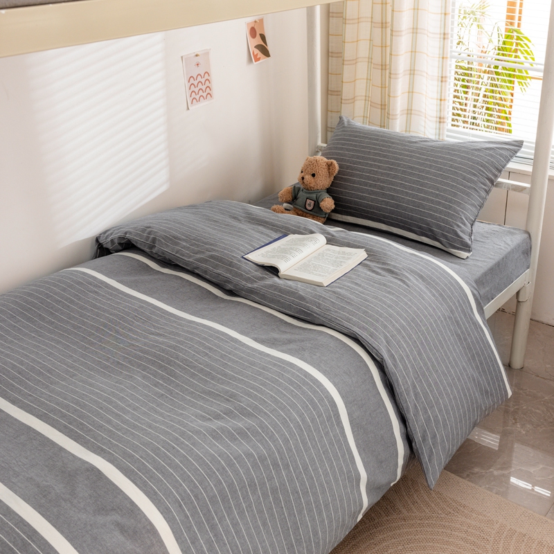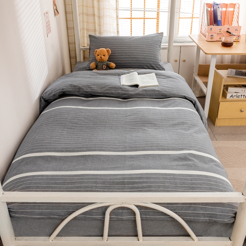 当前位置: 91家纺网 > 商品网购 > 床品套件 > 三件套 > 柠萌家居 2025新款无印良品风A类色织水洗棉全棉学生宿舍三件套床垫套三件套 灰白条