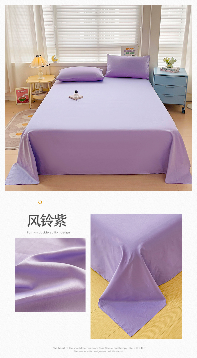 • 91家纺网 家纺一手货源 找家纺 2024新款全棉简约纯色床单 风铃紫