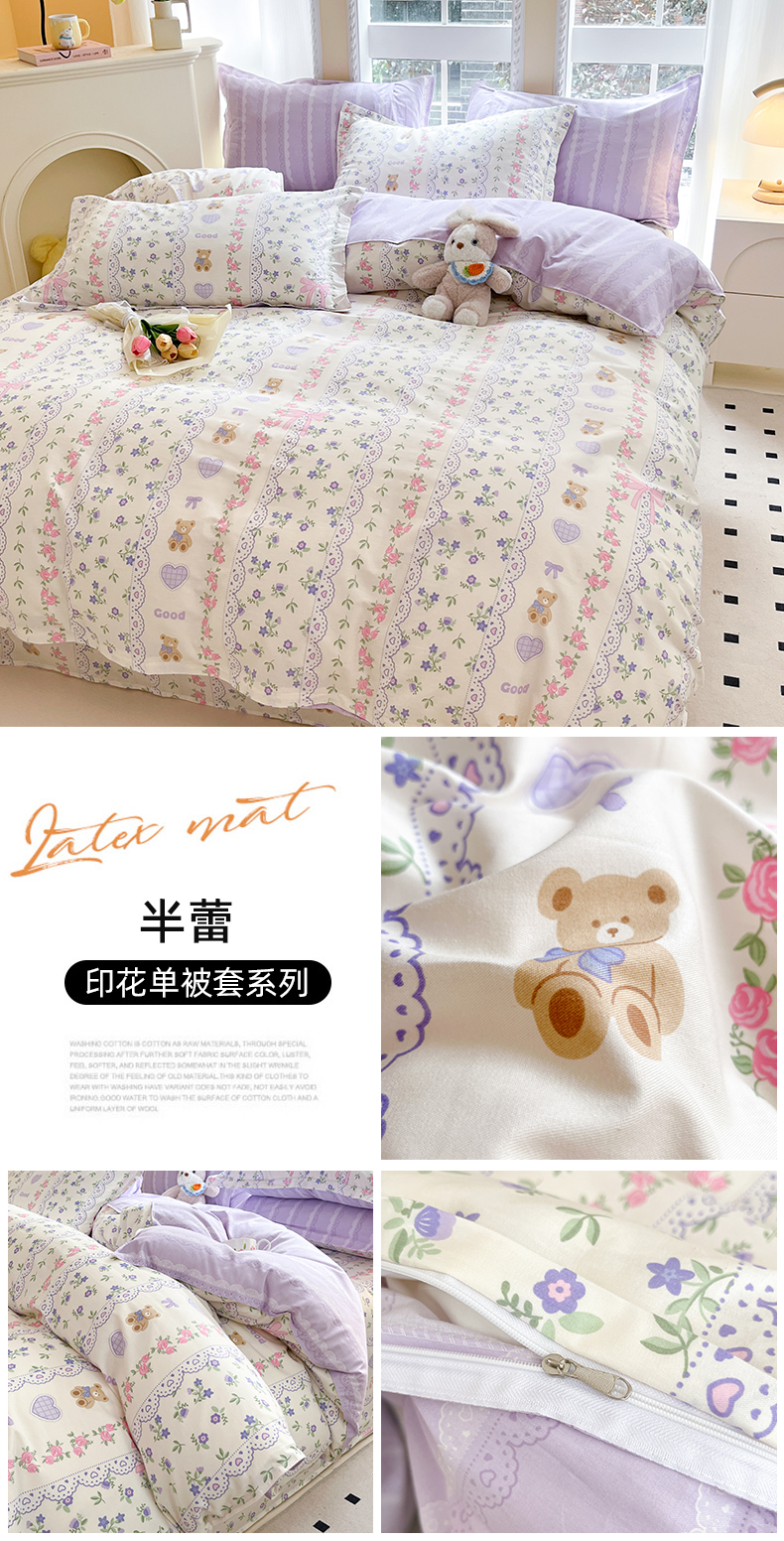 商品名称:铭成家纺 2024新款新疆棉喷气印花小清新系列单被套半蕾