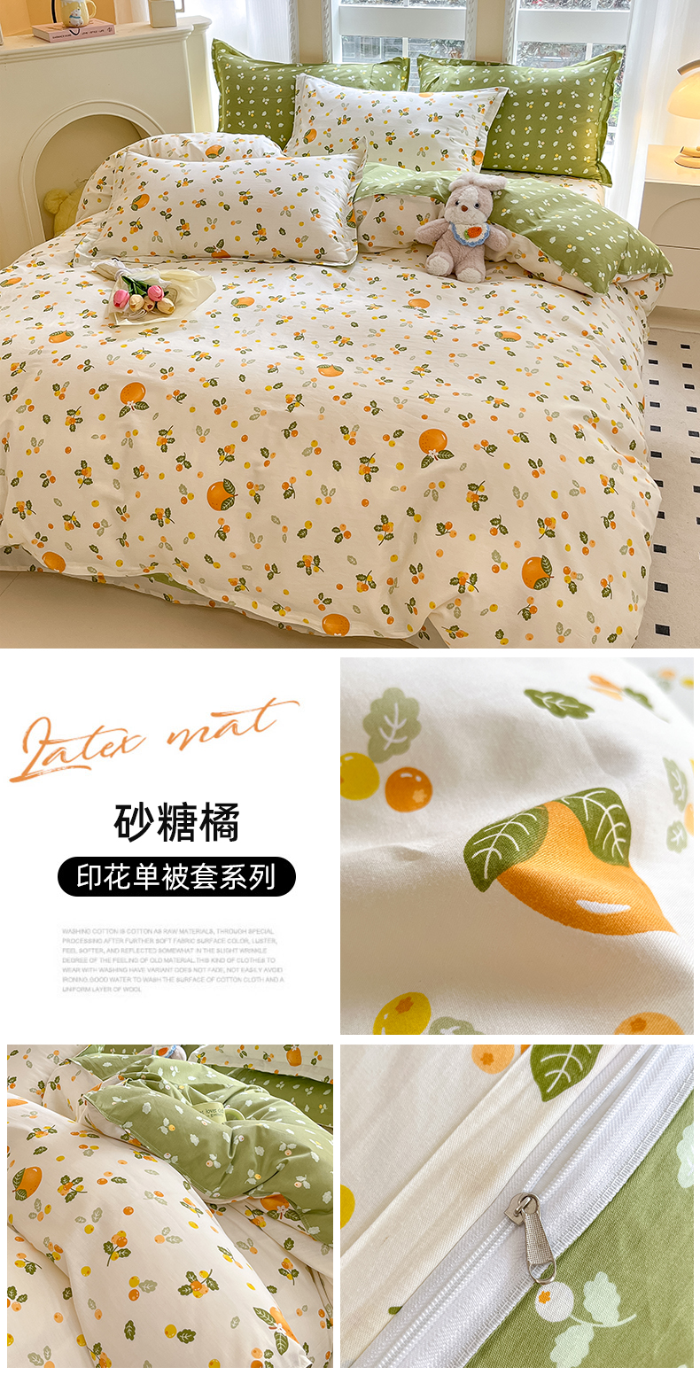 铭成家纺 2024新款新疆棉喷气印花小清新系列单被套砂糖橘