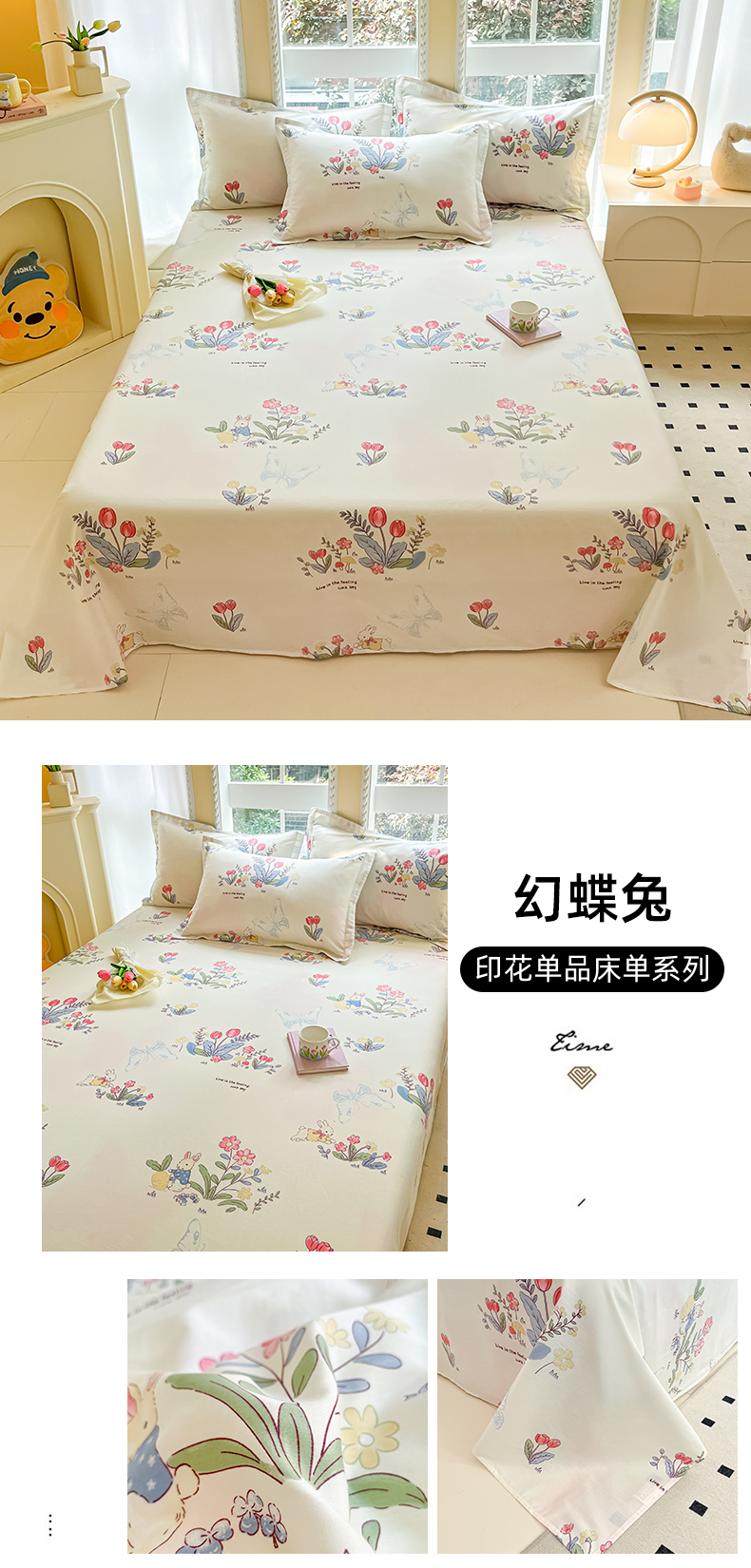 铭成家纺 2024新款新疆棉喷气印花小清新系列单床单幻蝶兔