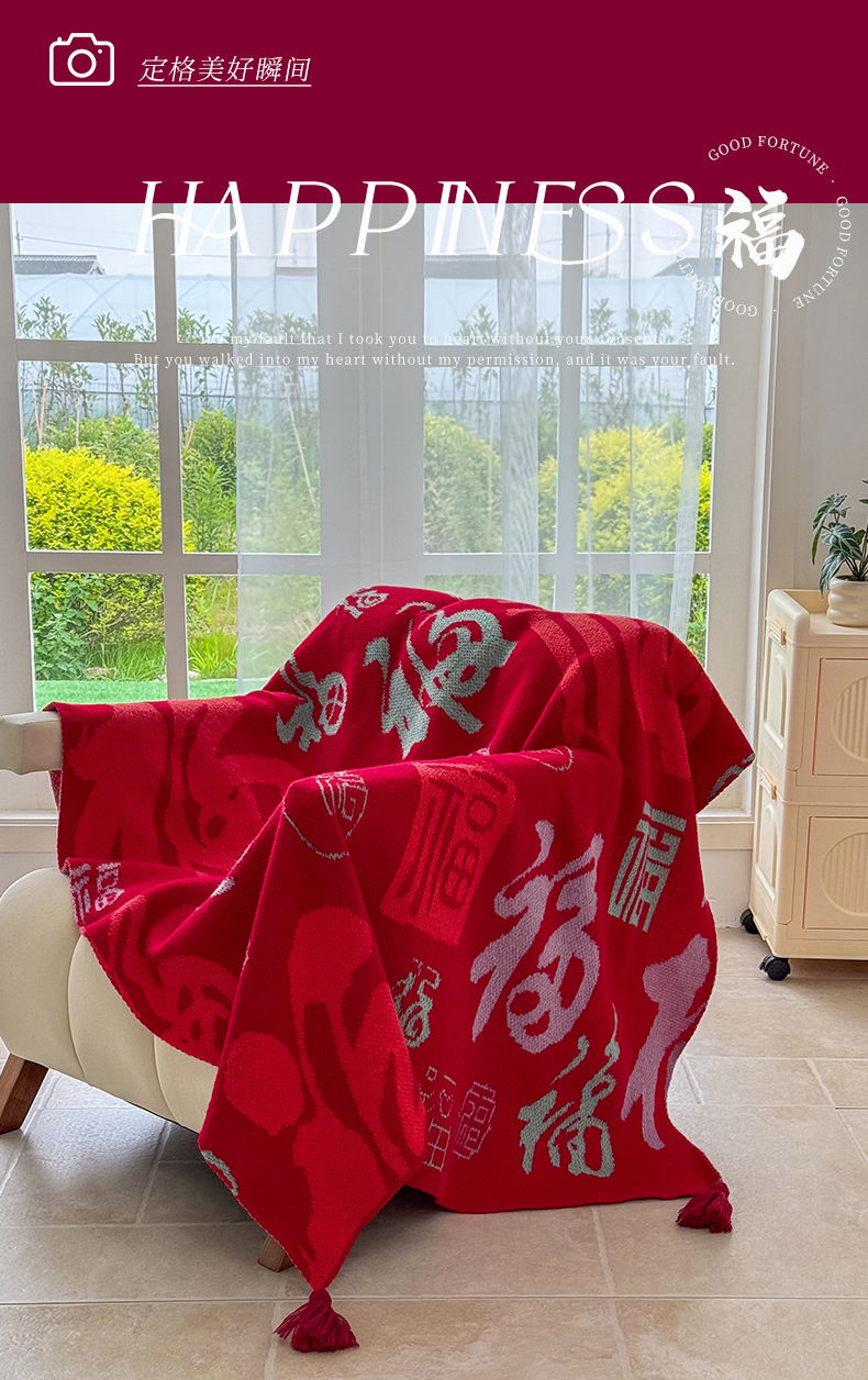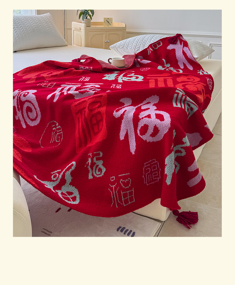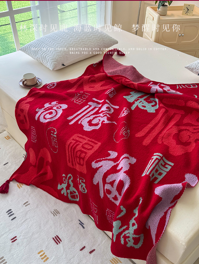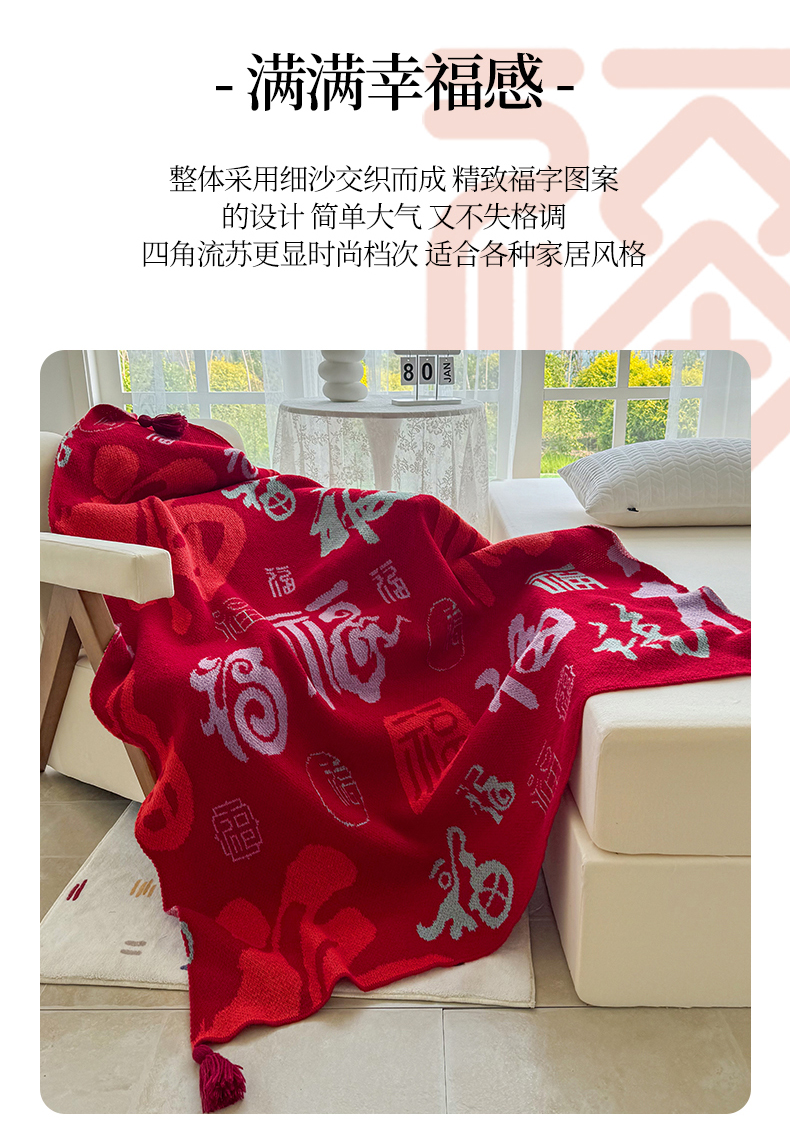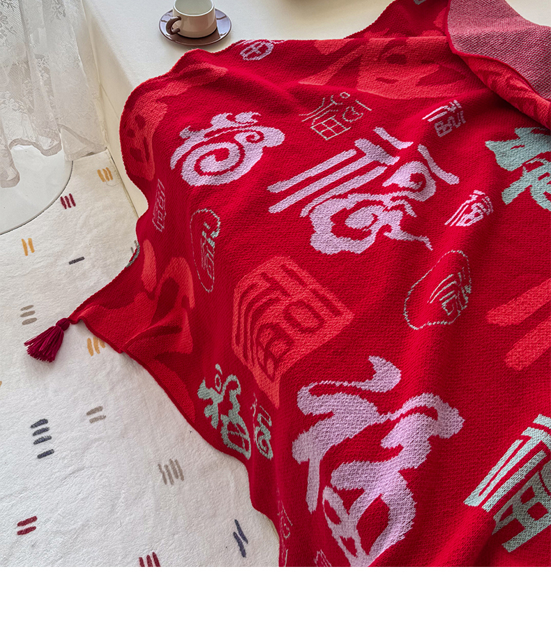 苏艺针织盖毯 2024新款新中式福字盖毯沙发毯 针织福字-百福