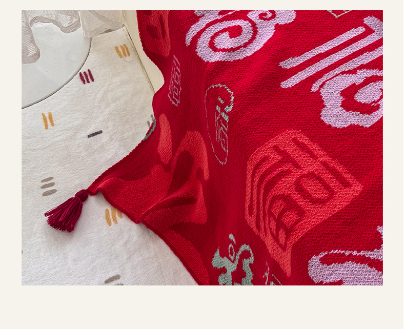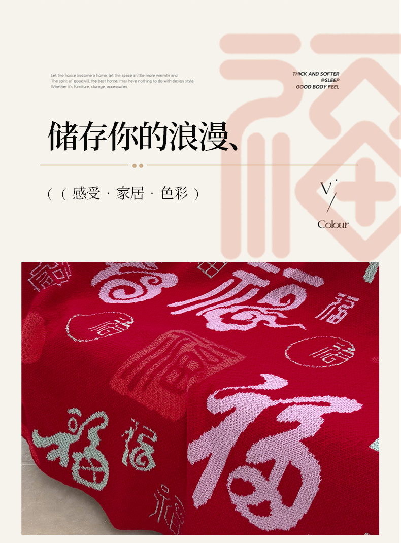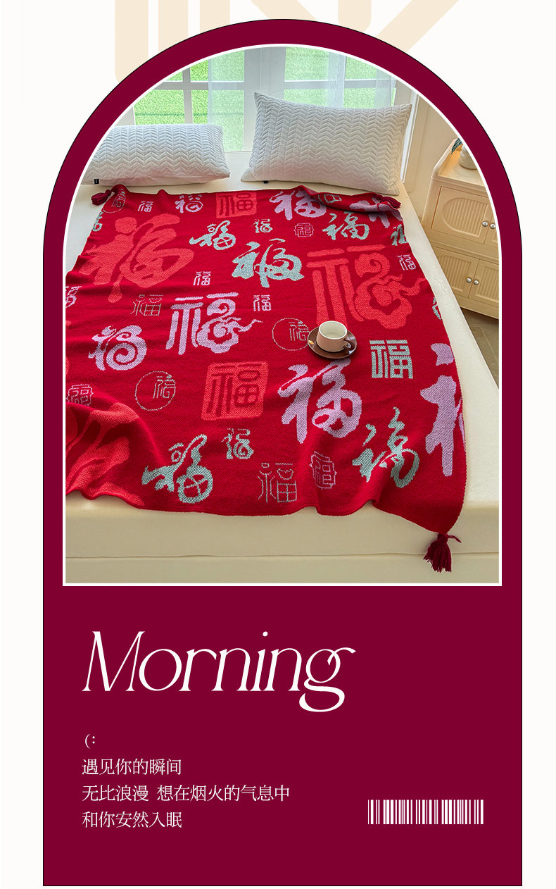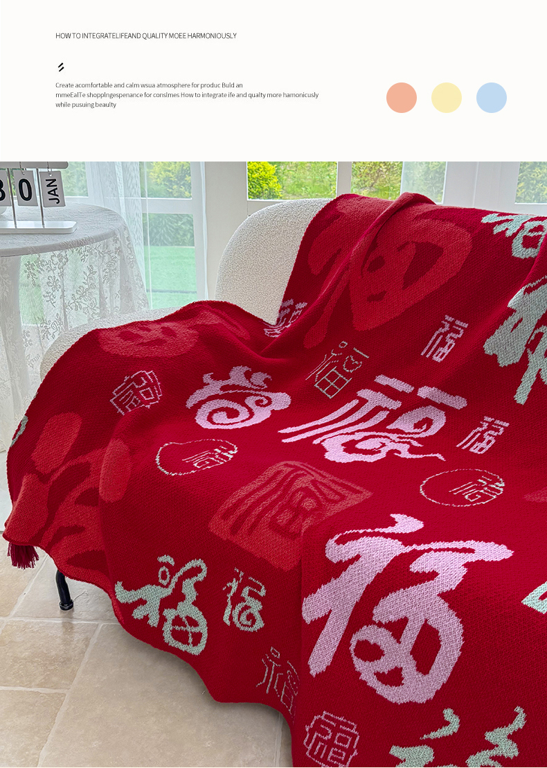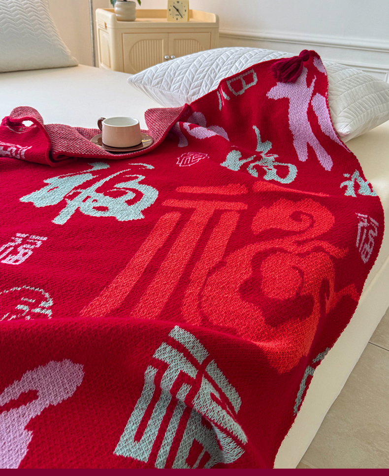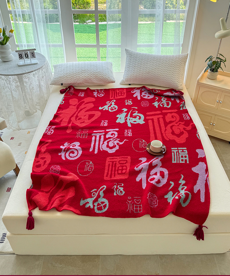 苏艺针织盖毯 2024新款新中式福字盖毯沙发毯 针织福字-百福