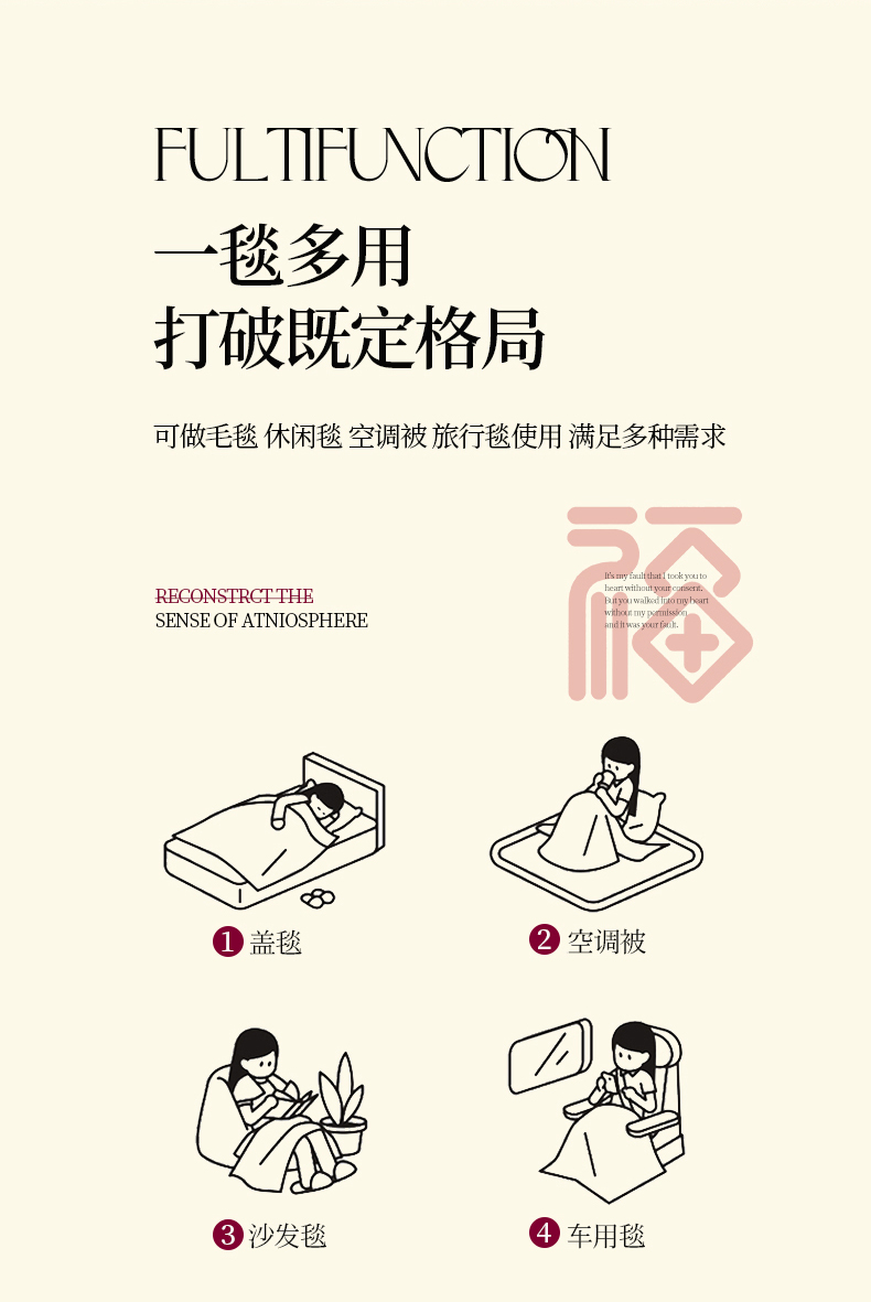 商品名称:苏艺针织盖毯 2024新款新中式福字盖毯沙发毯 针织福字-百福