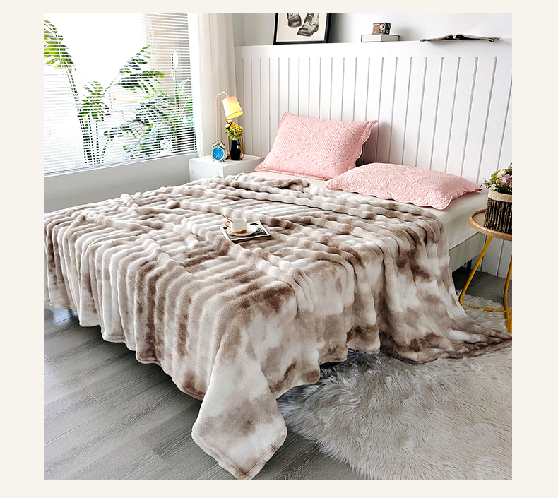 (总)美洲琳 2025新款提花简约珊瑚绒法莱绒毯毛毯毯子,白色,粉色,咖色,蓝灰,绿色,深灰