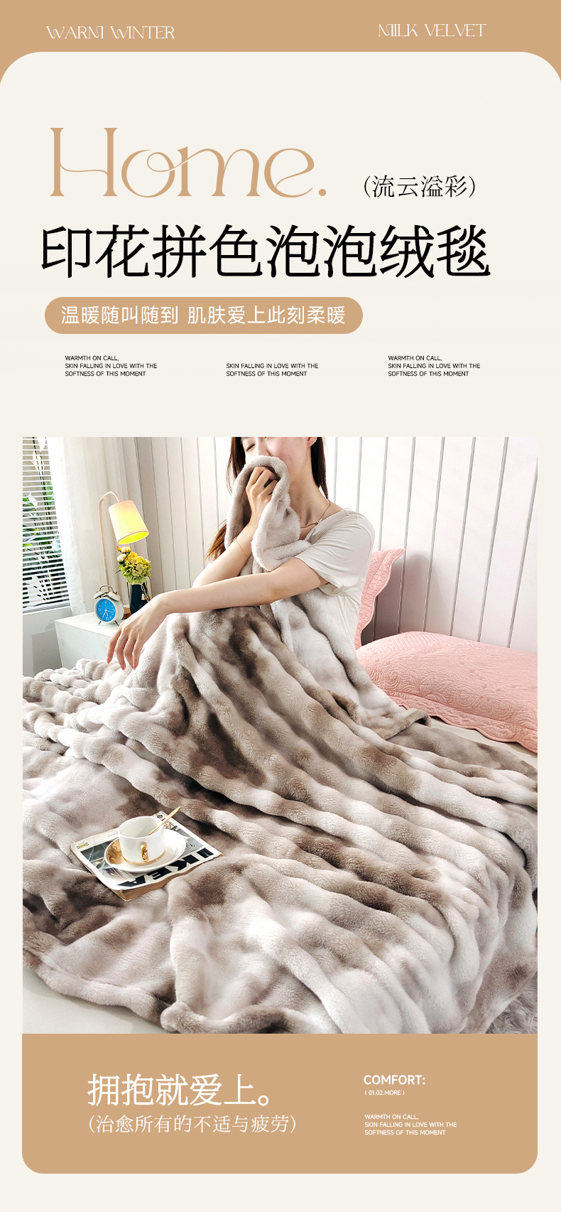 商品名称:美洲琳 2025新款印花拼色泡泡绒毯-流云溢彩 大理石纹