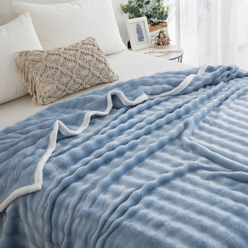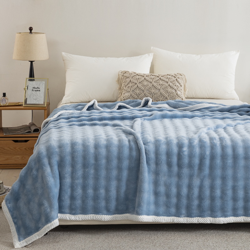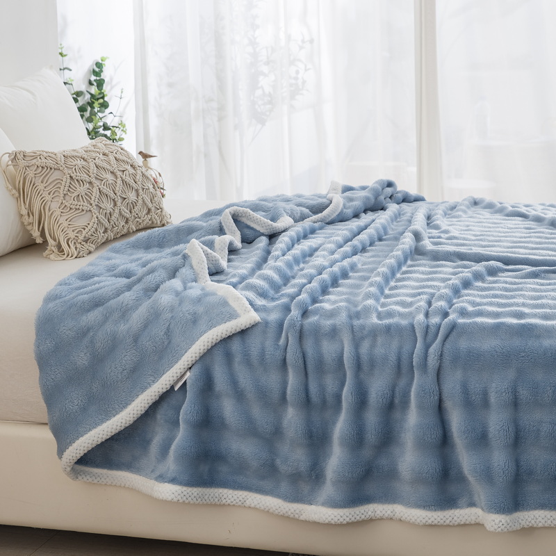 卉晨家纺 2024新款牛奶绒兔毛绒空调毯午睡毯泡泡毛毯 天青蓝