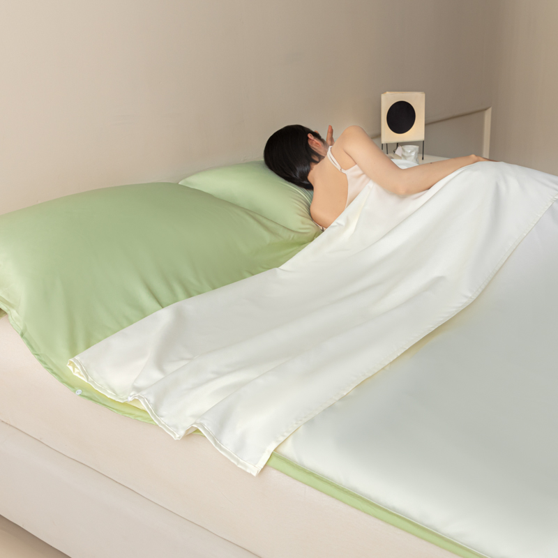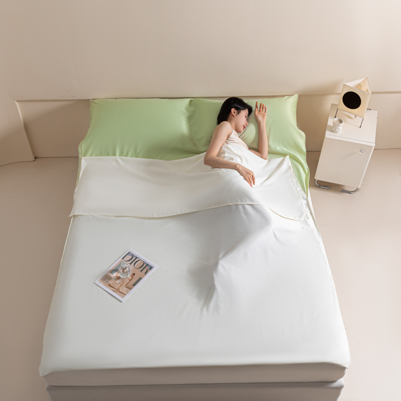 悦织湾家纺 2025新款水洗棉纯色旅行隔脏冰丝睡袋 睡袋-芝士+果绿