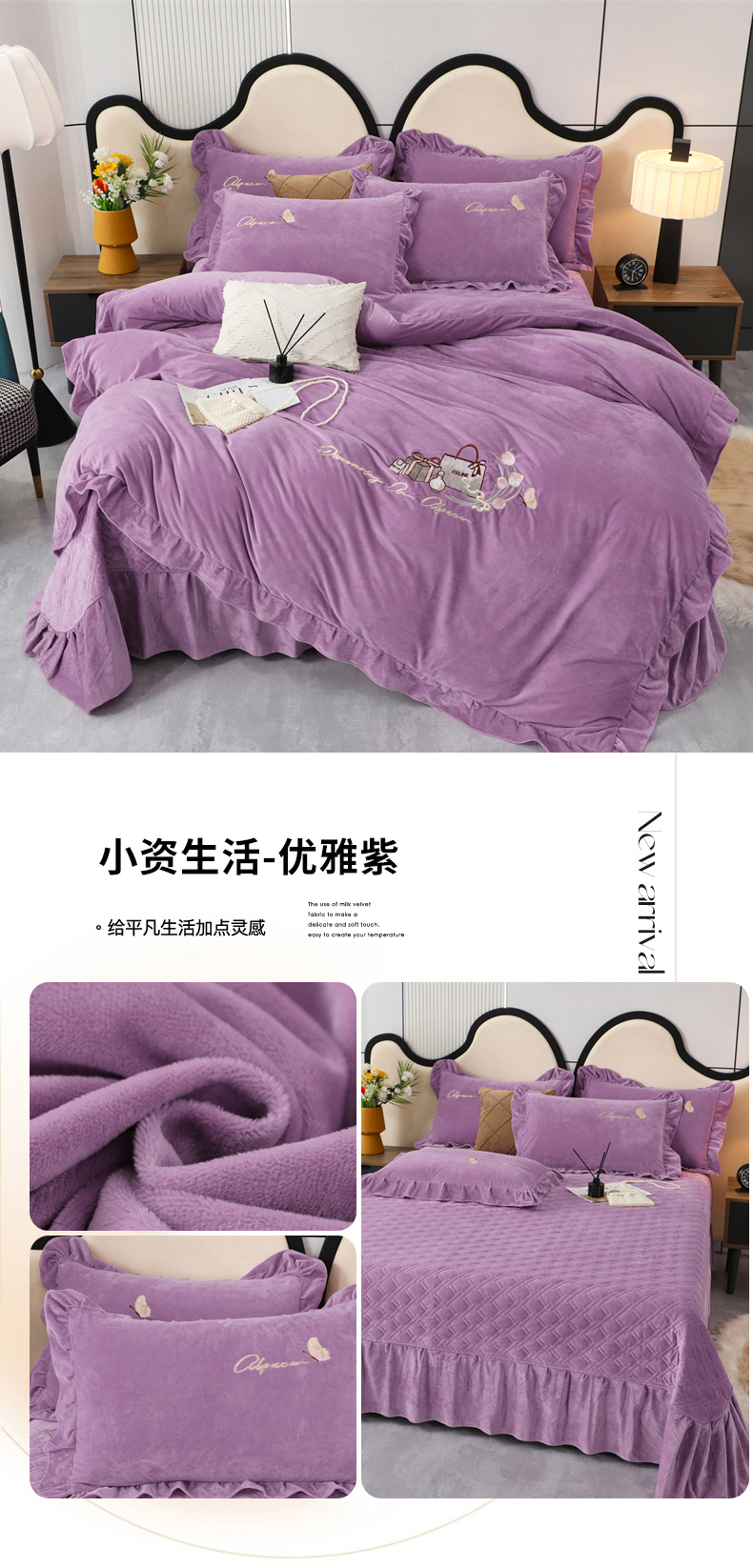 商品名称:优姿家纺 2024新品宝宝绒11斤夹棉床盖保暖四件套 小资生活-优雅紫