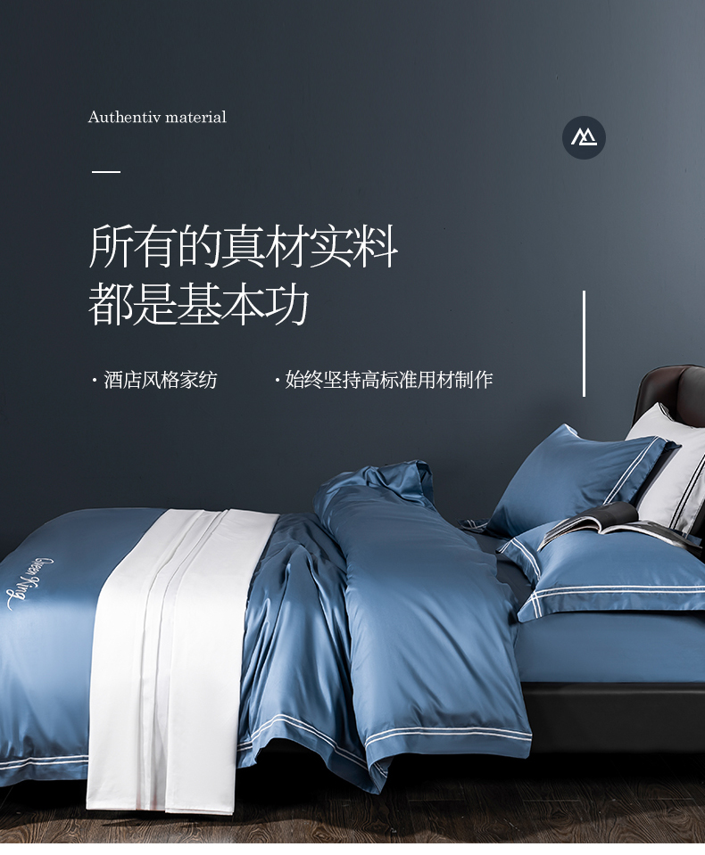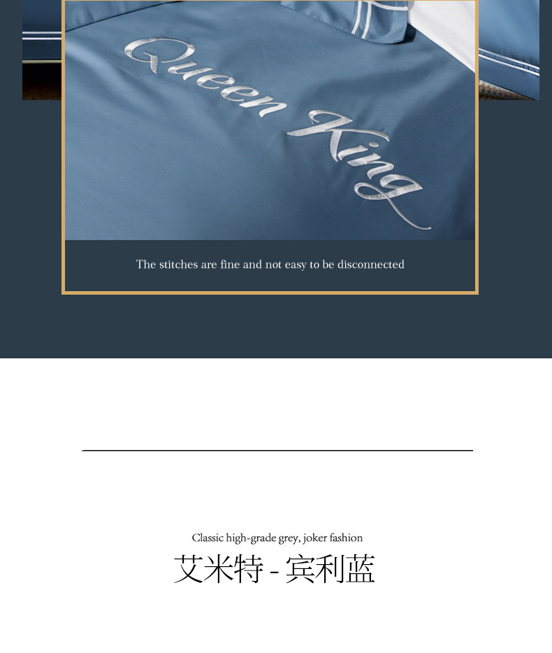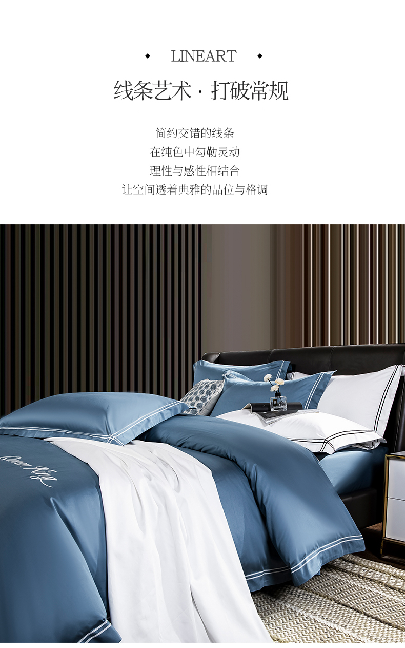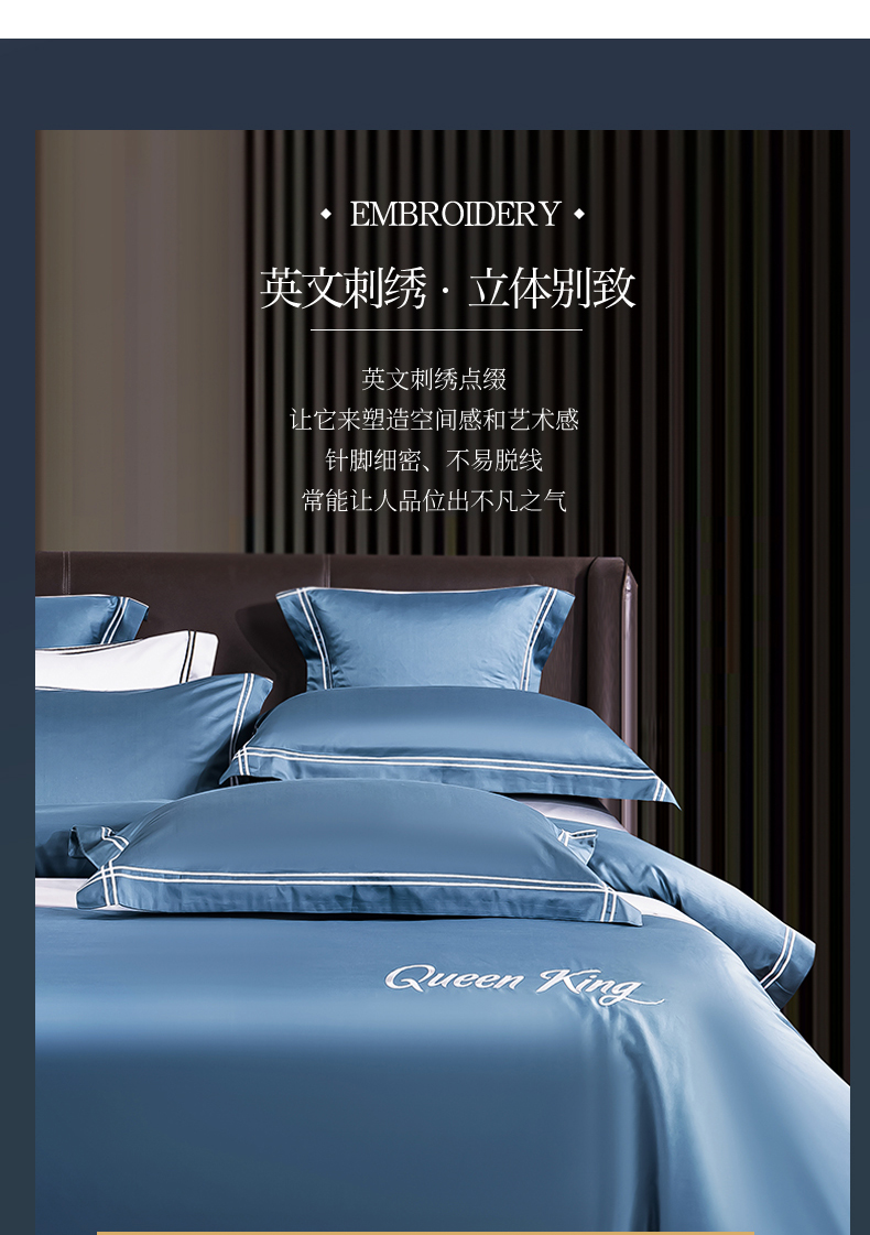商品名称:蓝米卡夫 2024新款A类100支全棉刺绣艾米特系列四件套(礼盒包装) 艾米特-宾利蓝