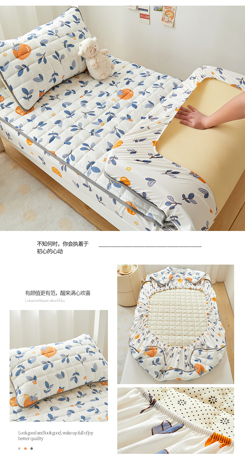 商品名称:花言狐语 2025新款水洗棉夹棉加厚床笠(印花系列)-单人床 橙子