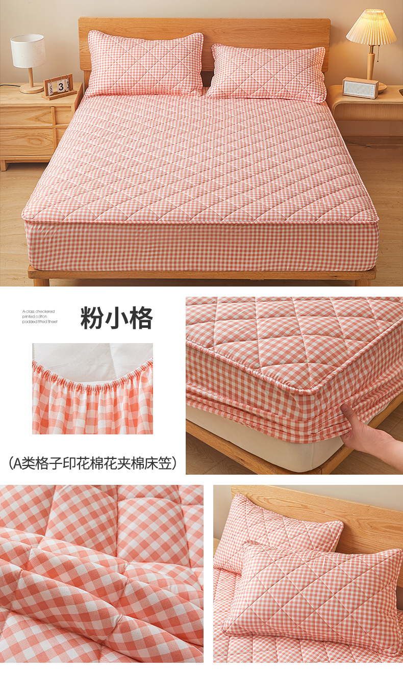 商品名称:多谷家纺 2024新款格子无印风系列棉花夹棉床笠 粉小格