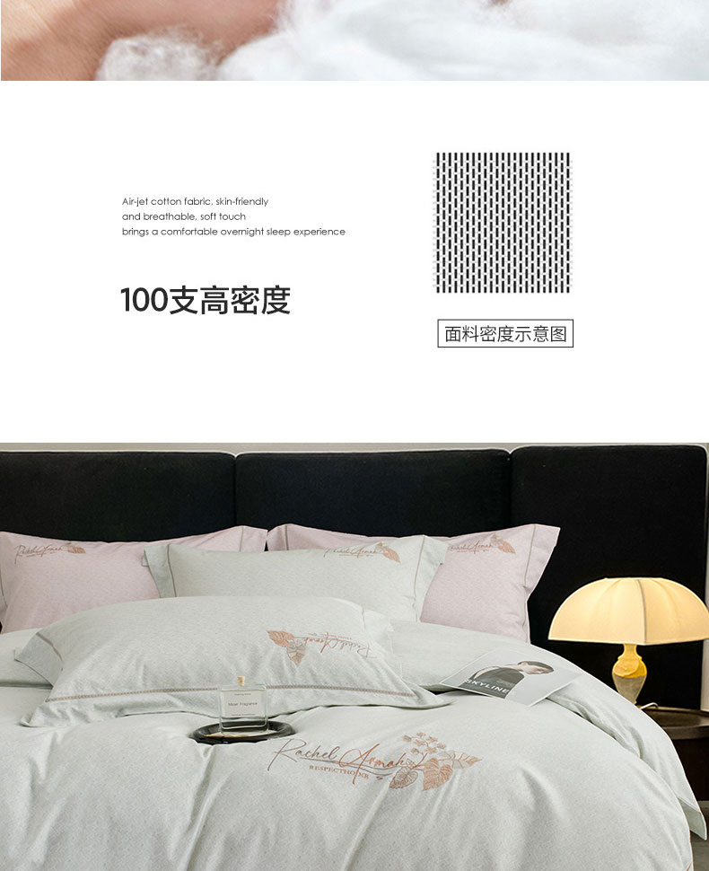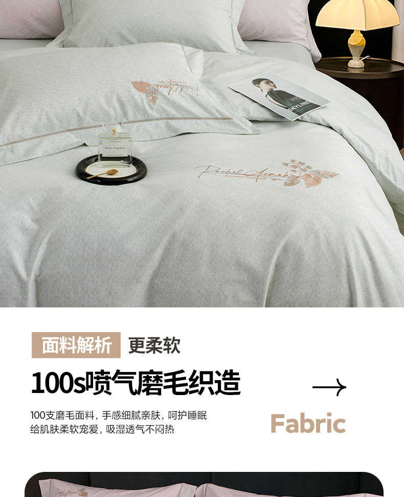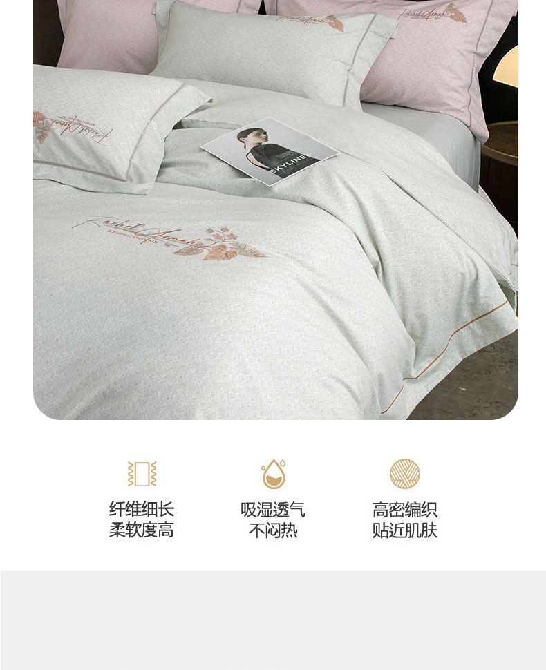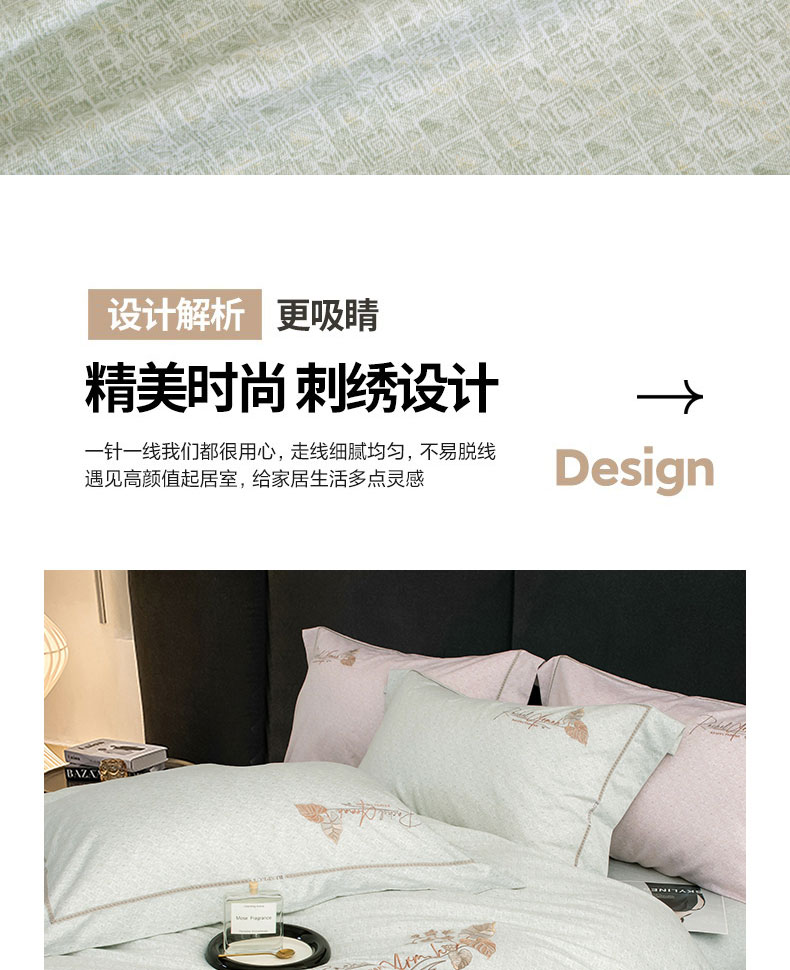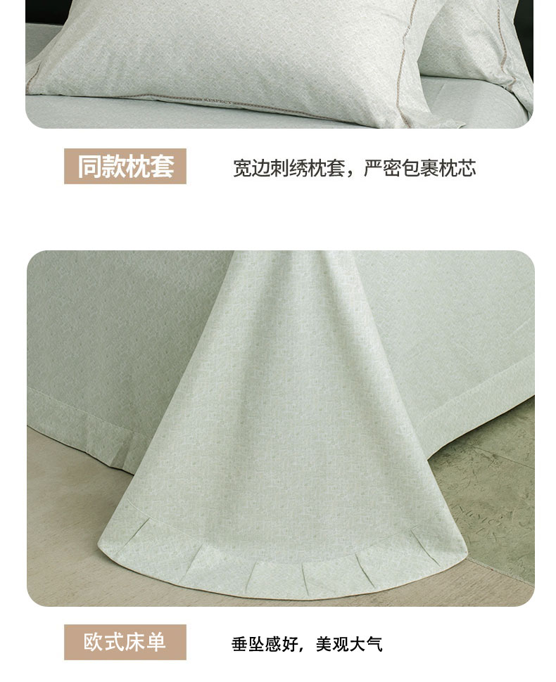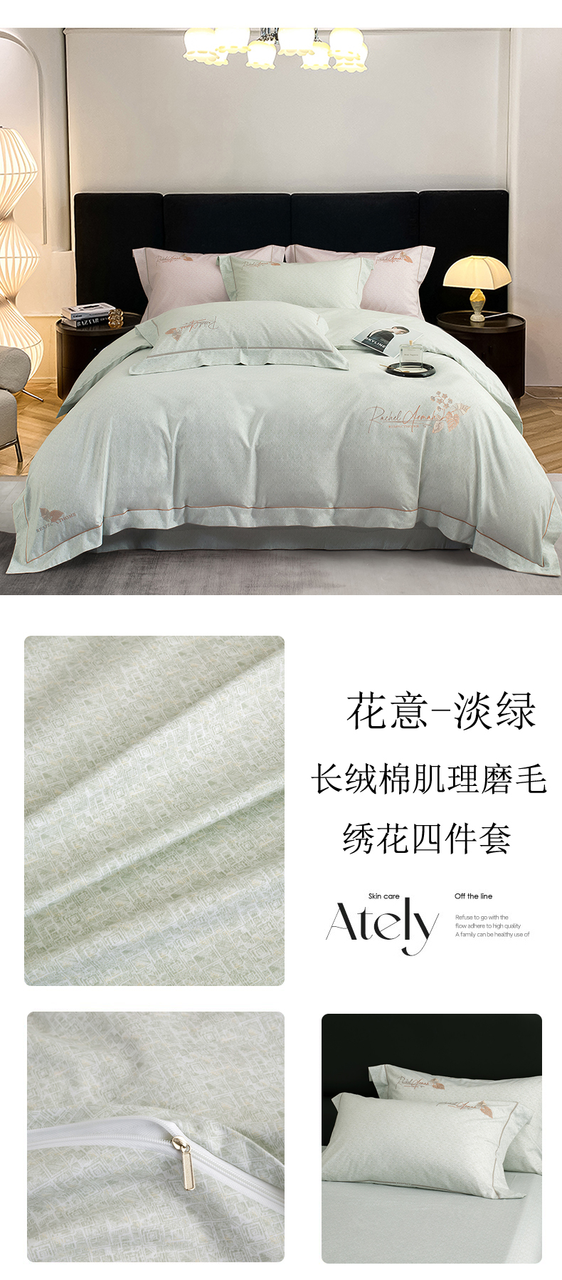 商品名称:蒂爵 全棉纯棉长绒棉肌理纹刺绣磨毛四件套-花意 花意-淡绿