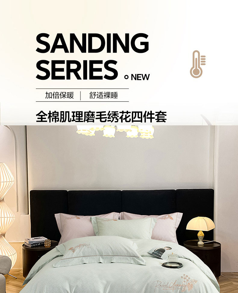 (总)蒂爵 全棉纯棉长绒棉肌理纹刺绣磨毛四件套-舒羽,舒羽-果绿,舒羽-暖橘,舒羽-水蓝