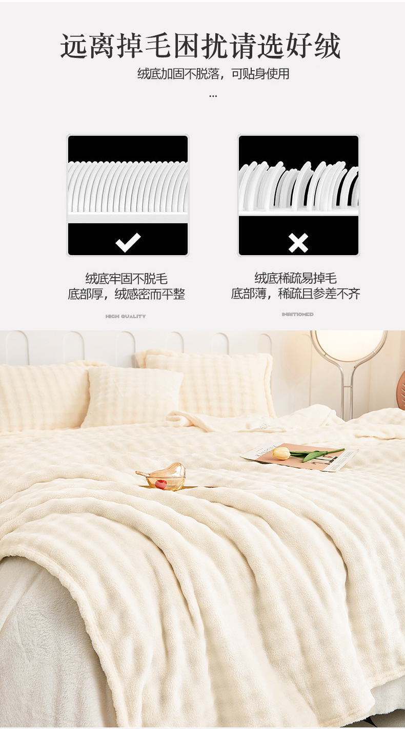 商品名称:悦织湾家纺 2025新款布兰卡系列仿兔毛小泡泡兔纯色牛奶绒毛毯 布兰卡-奶昔白