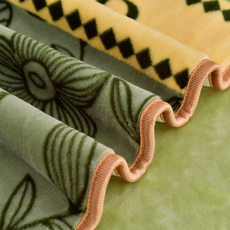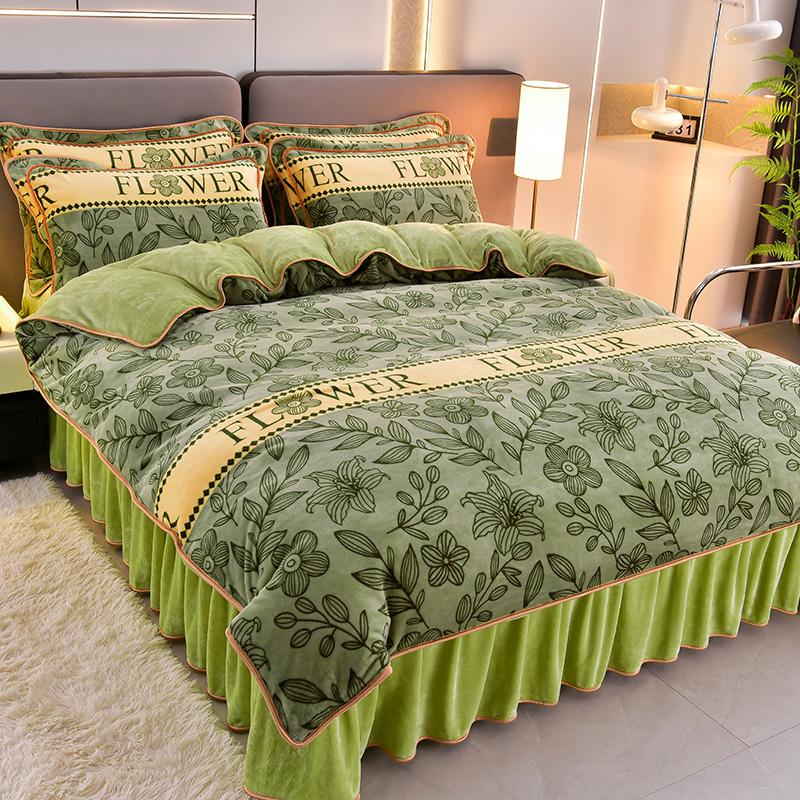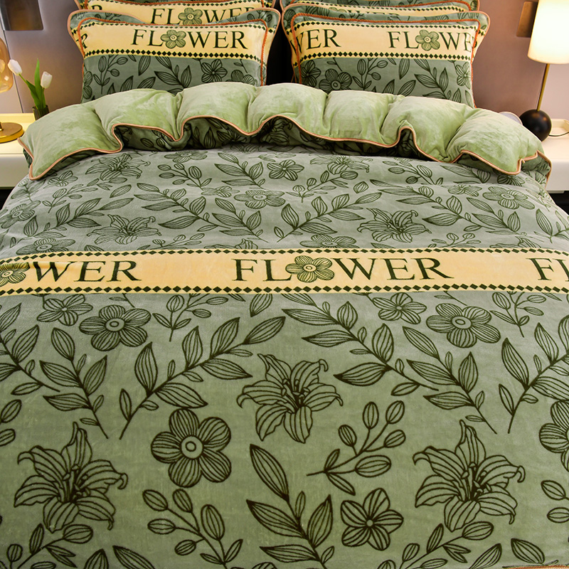 (总)诺梵家纺 2025新款立体兔毛烂花四件套,蝶梦-绿,伊莎-黄