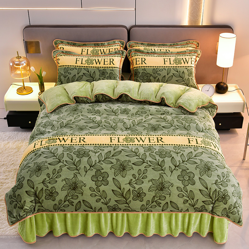 商品名称:诺梵 2025直播8.5斤高克重牛奶绒四件套水晶金貂法莱绒床裙款 莫妮卡