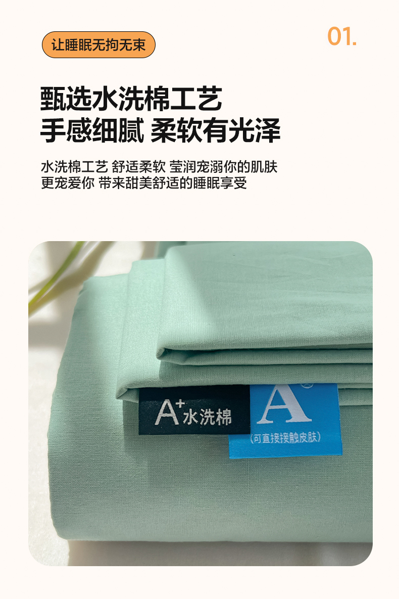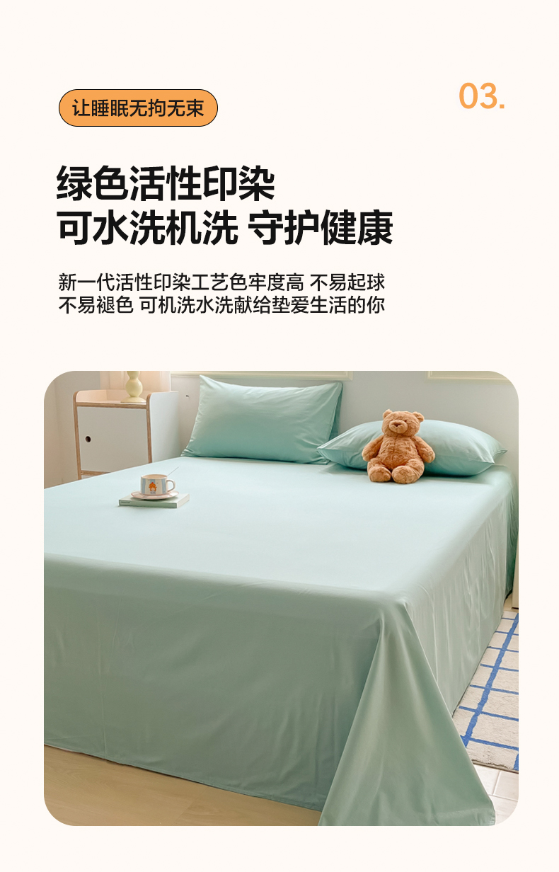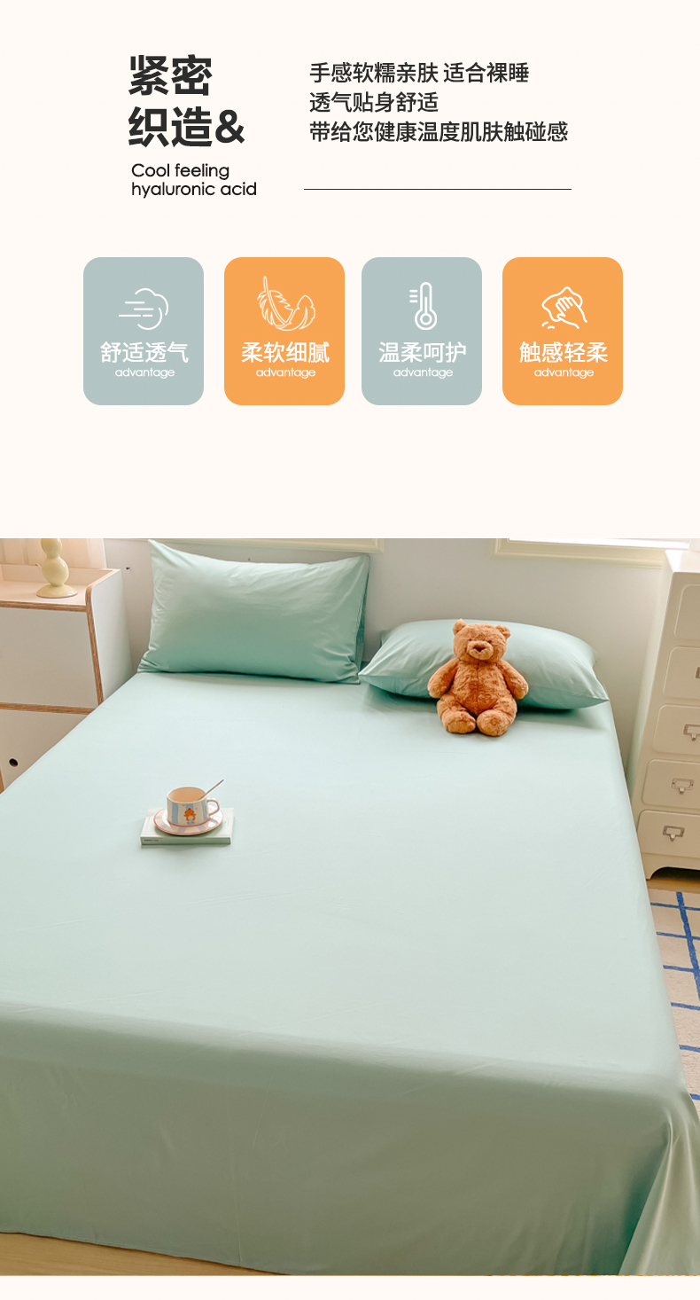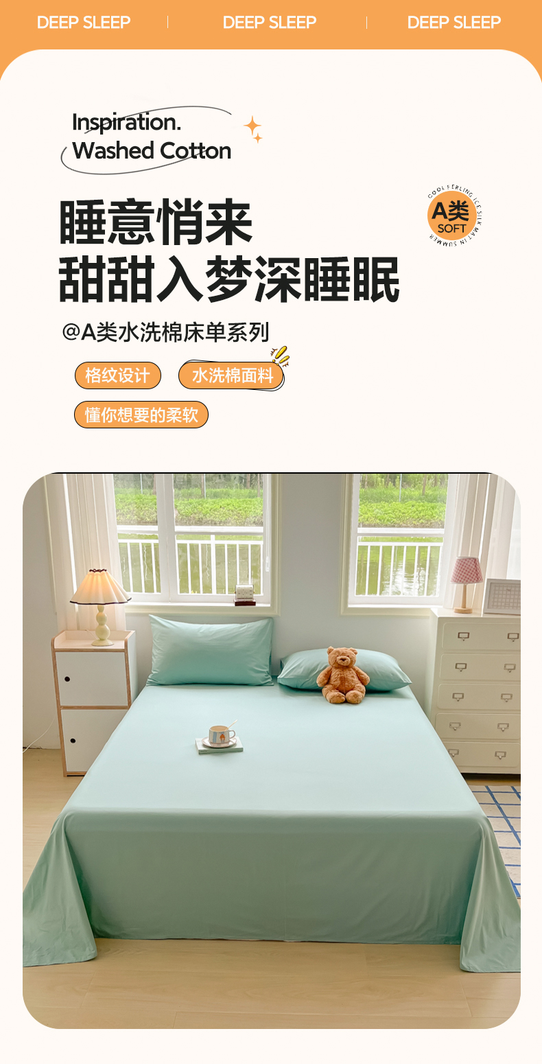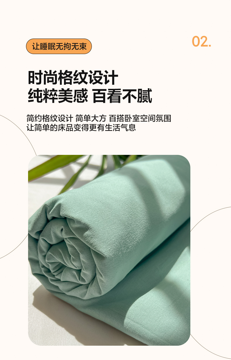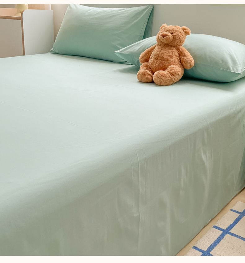 韩巢家纺 2024新款简约格子纯色A类水洗棉床单枕套三件套 A类浅绿-床单