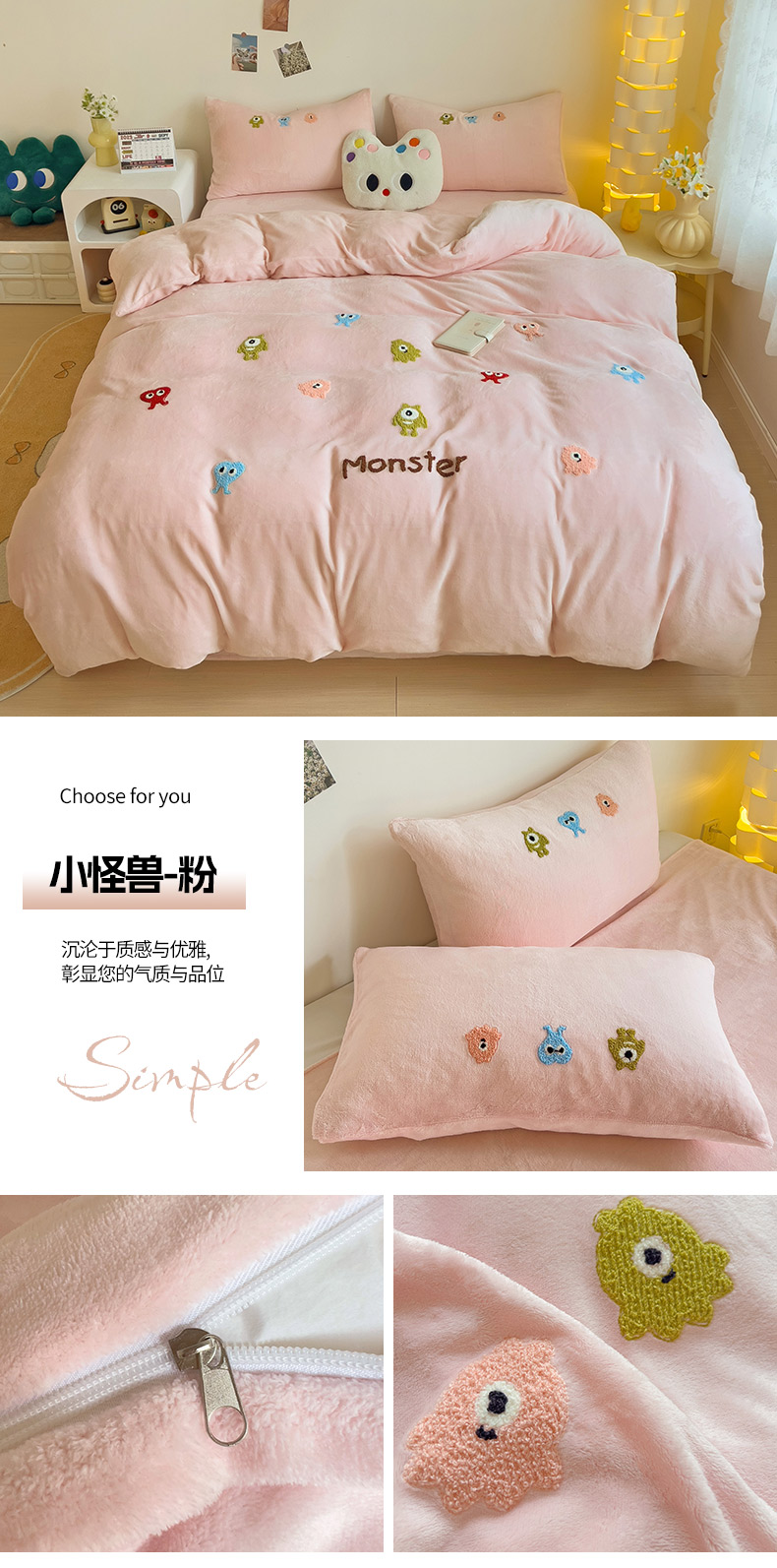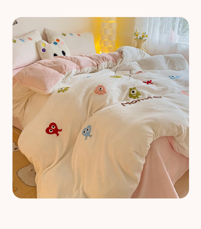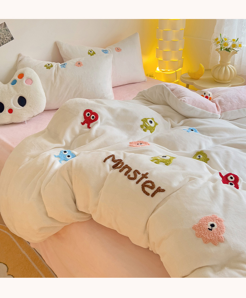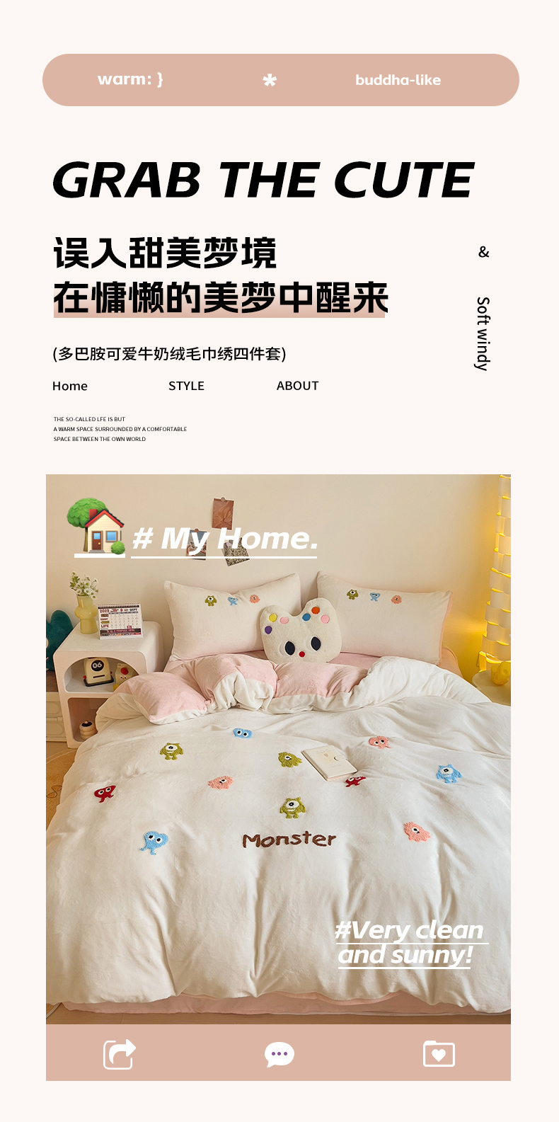(总)梦之岛 2024新款多巴胺小怪兽可爱牛奶绒毛巾绣四件套