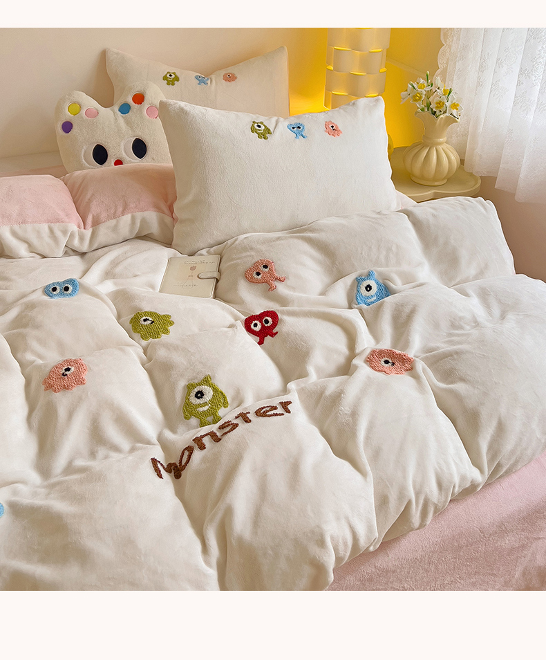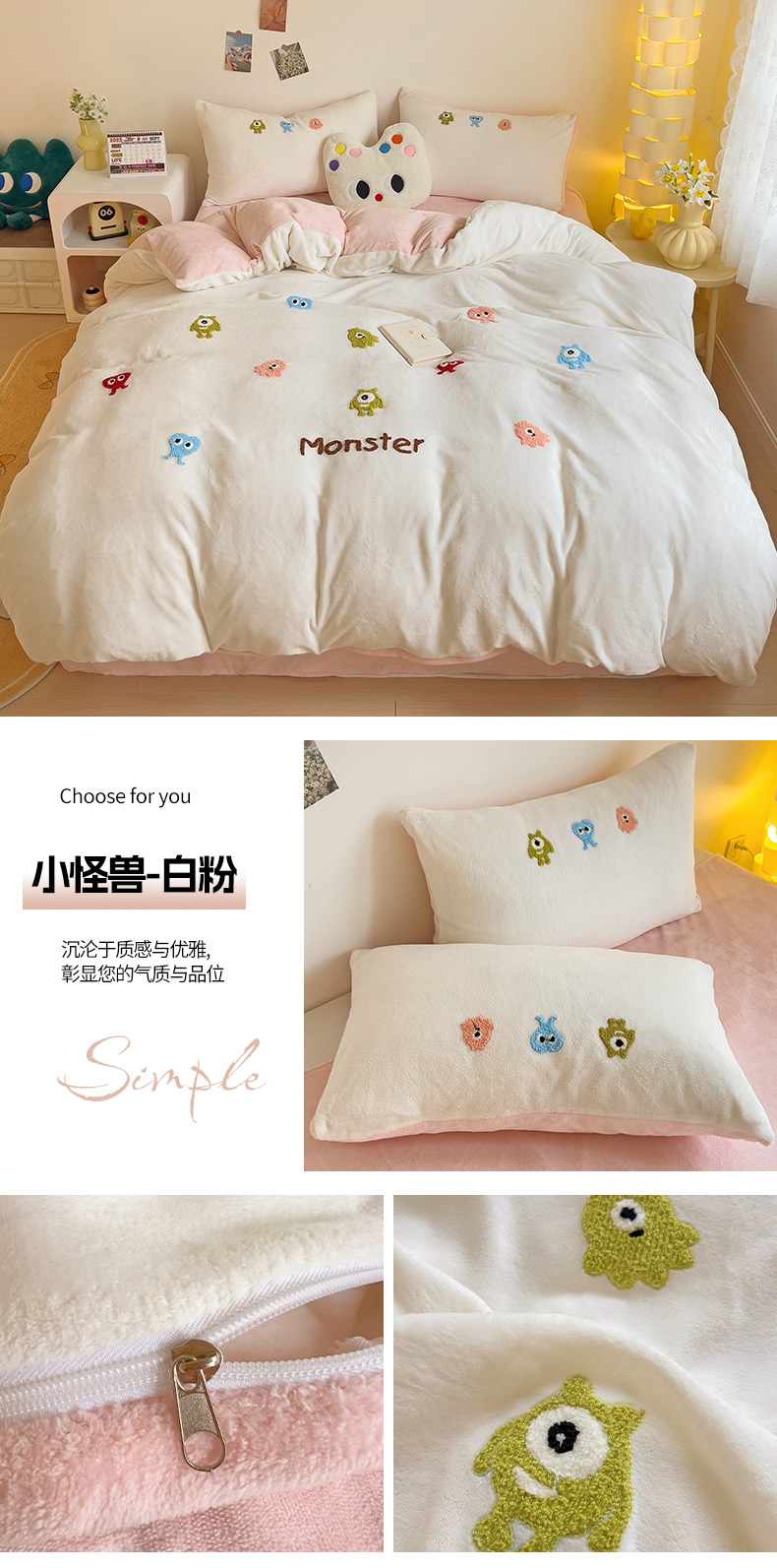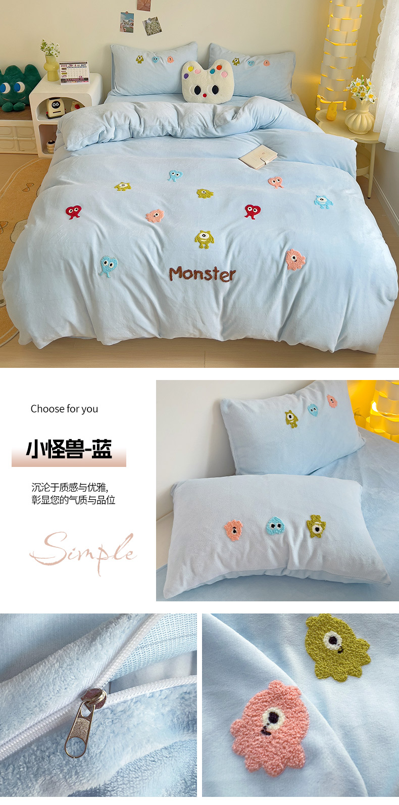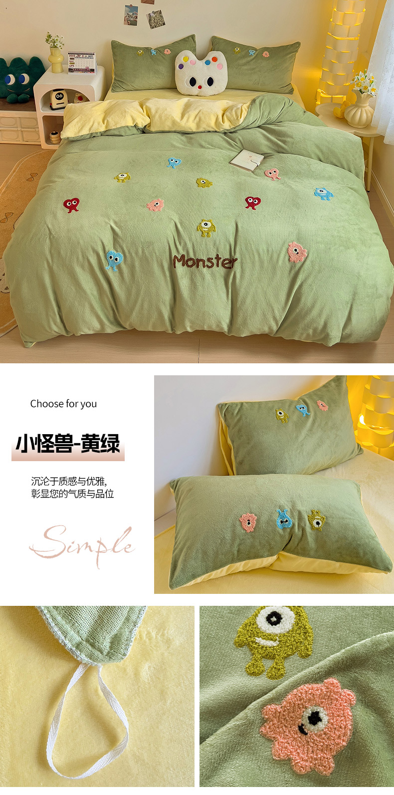 (总)梦之岛 2024新款多巴胺小怪兽可爱牛奶绒毛巾绣四件套