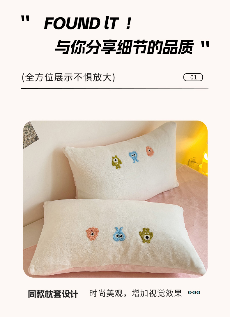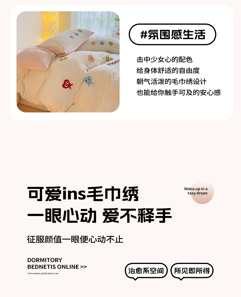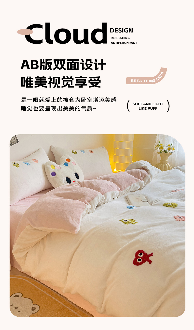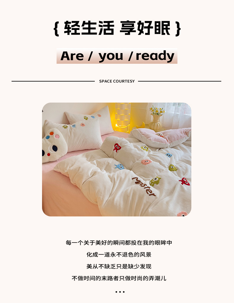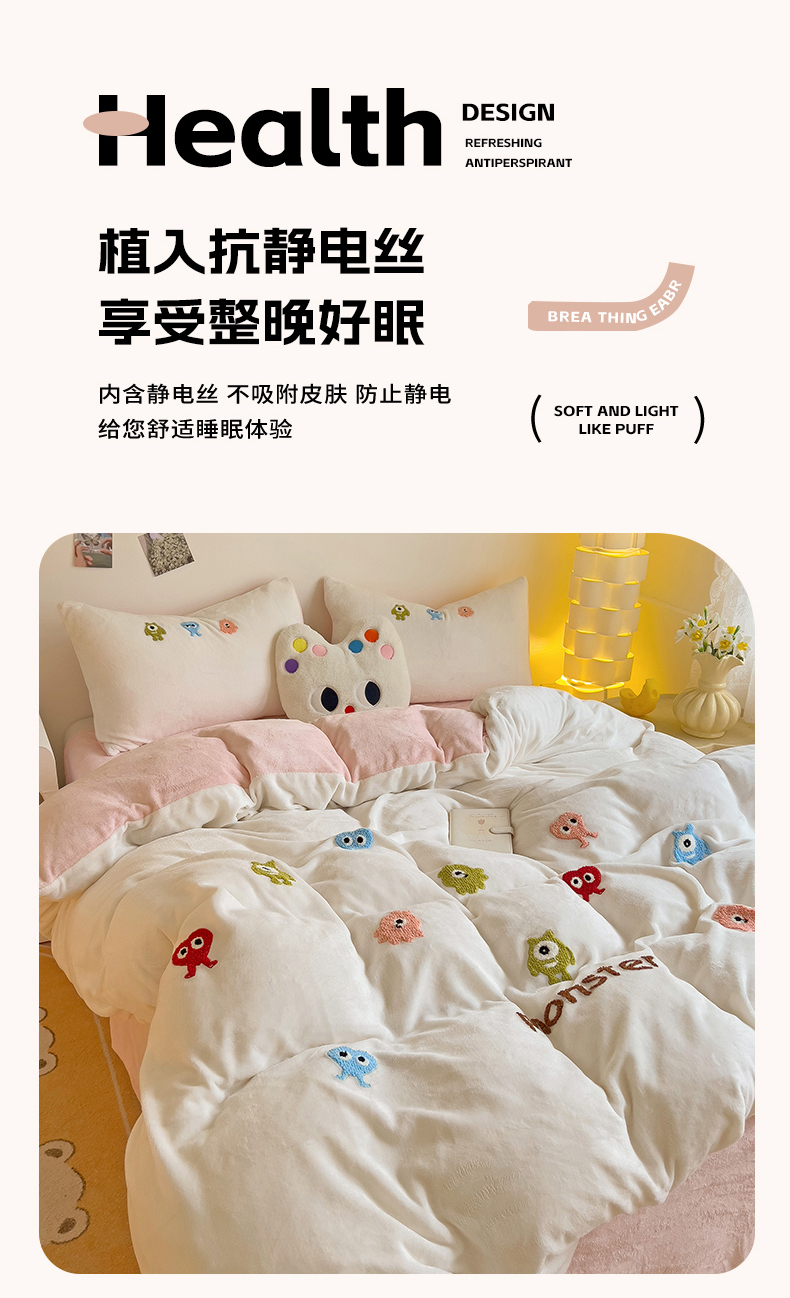 (总)梦之岛 2024新款多巴胺小怪兽可爱牛奶绒毛巾绣四件套