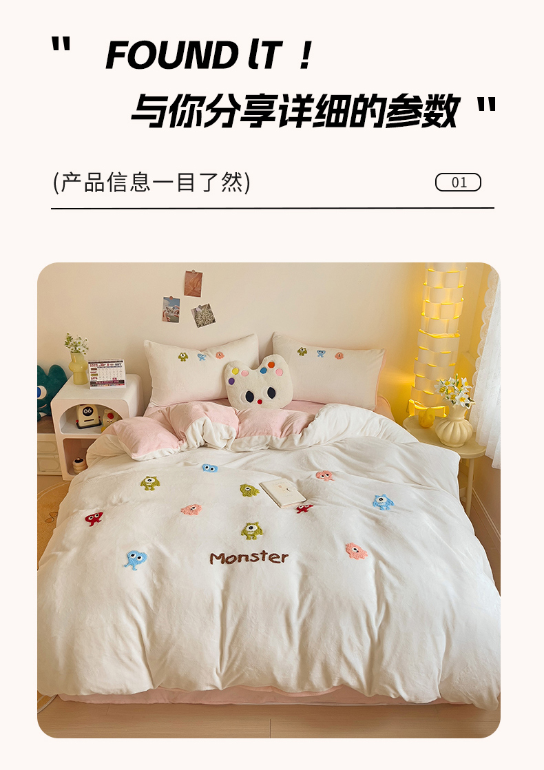 商品名称:(总)梦之岛 2024新款多巴胺小怪兽可爱牛奶绒毛巾绣四件套