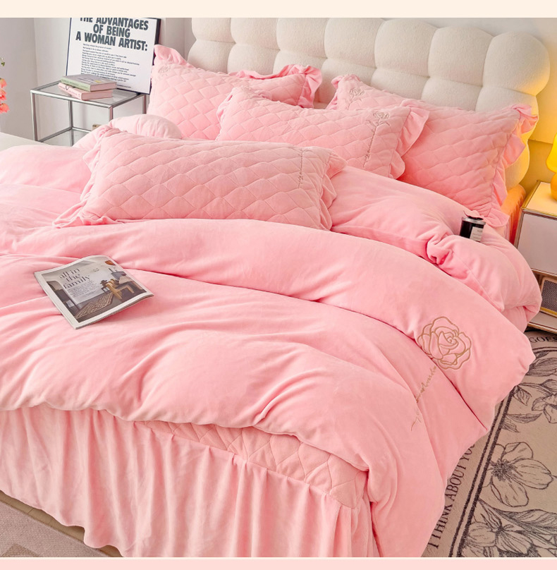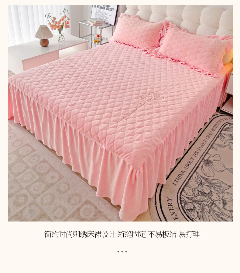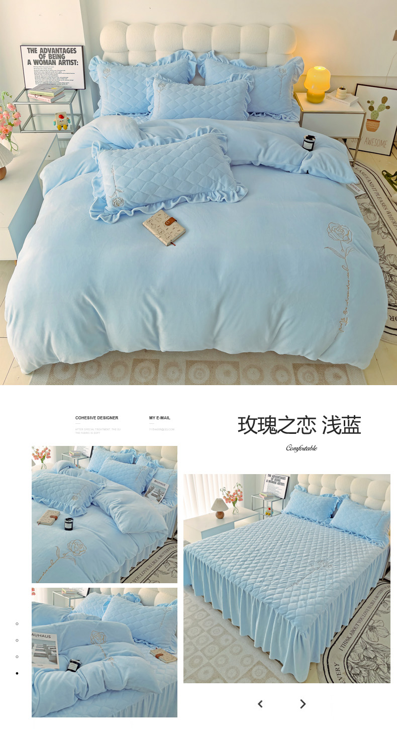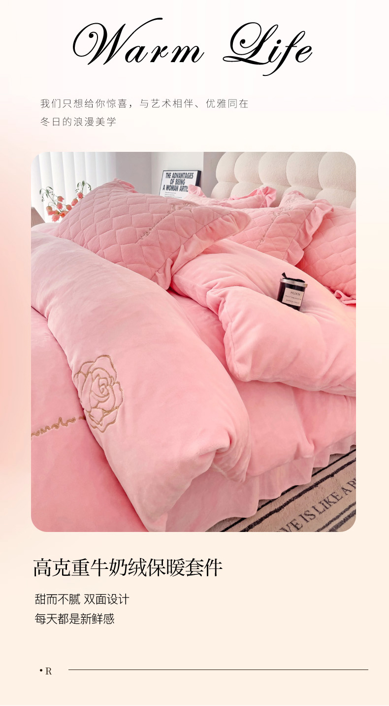 当前位置: 91家纺网 > 商品网购 > 床品套件 > 四件套 > 牛奶绒四件套 > (总)星尚家纺 2024新款加厚保暖全消光牛奶绒夹棉床裙四件套-玫瑰之恋